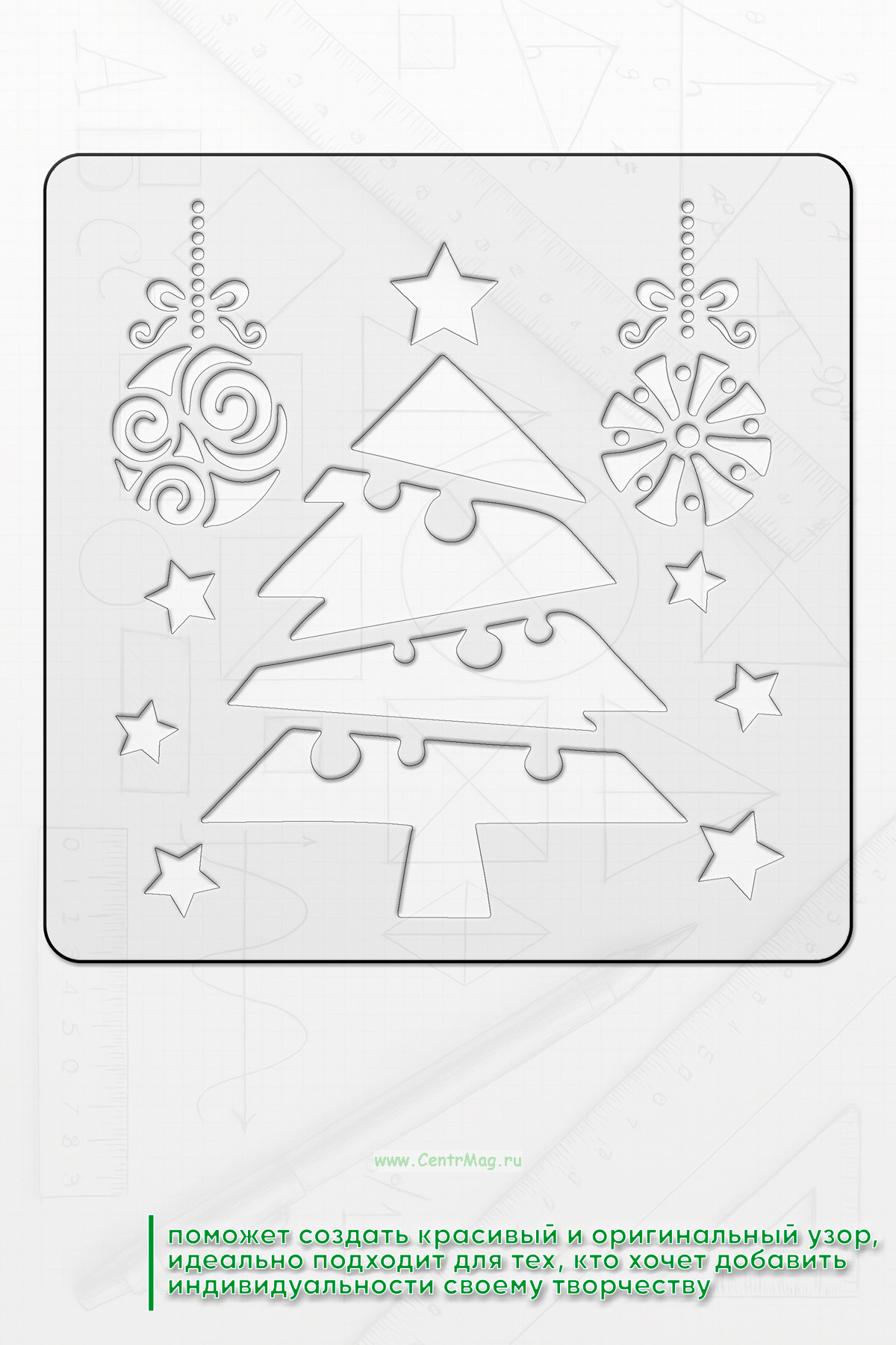 Трафарет поможет создать красивый и оригинальный узор. Идеально подходит для тех, кто хочет добавить индивидуальности своему творчеству в Новогодние праздники. Можно использовать для украшения открыток, альбомов, коробок, шкатулок, предметов мебели и даже интерьера