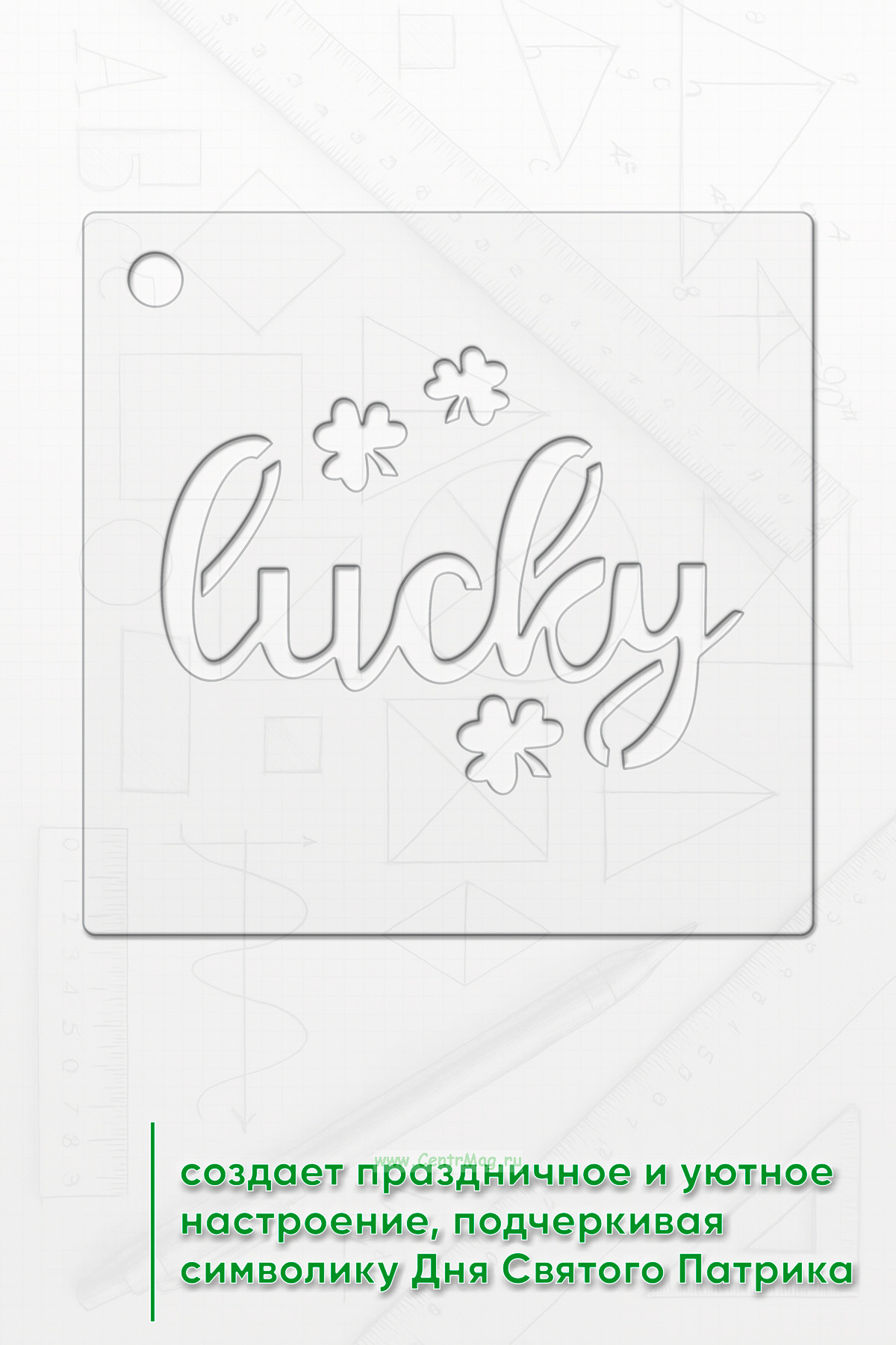 Трафарет создает праздничное и уютное настроение, подчеркивая символику Дня Святого Патрика.