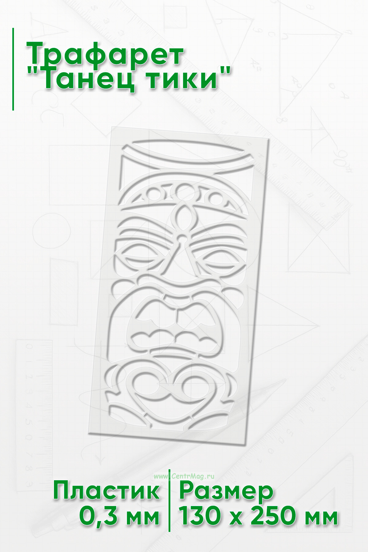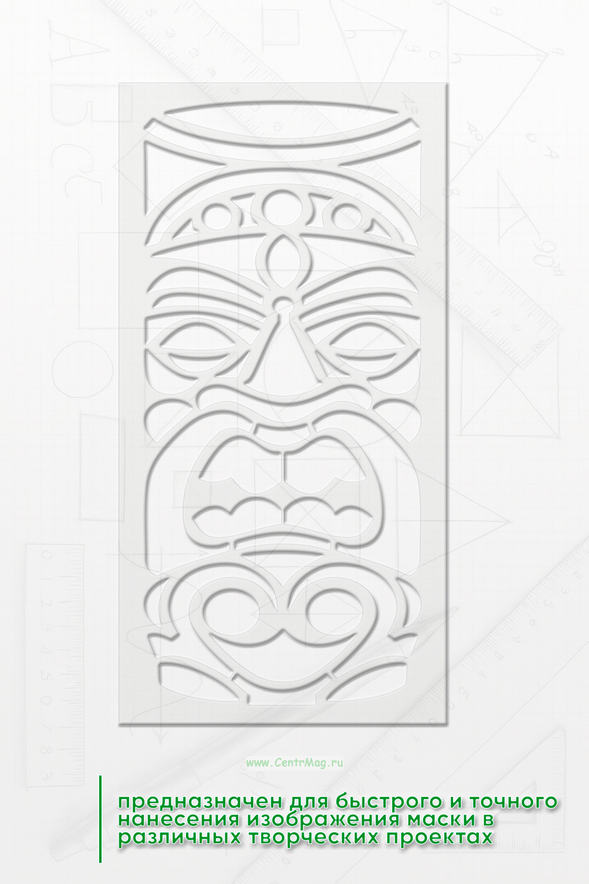 Трафарет "Танец тики" предназначен для быстрого и точного нанесения изображения маски в различных творческих проектах. Он помогает создать эффект аутентичной древней маски, подчеркивая стиль и атмосферу исторического или фантастического образа.