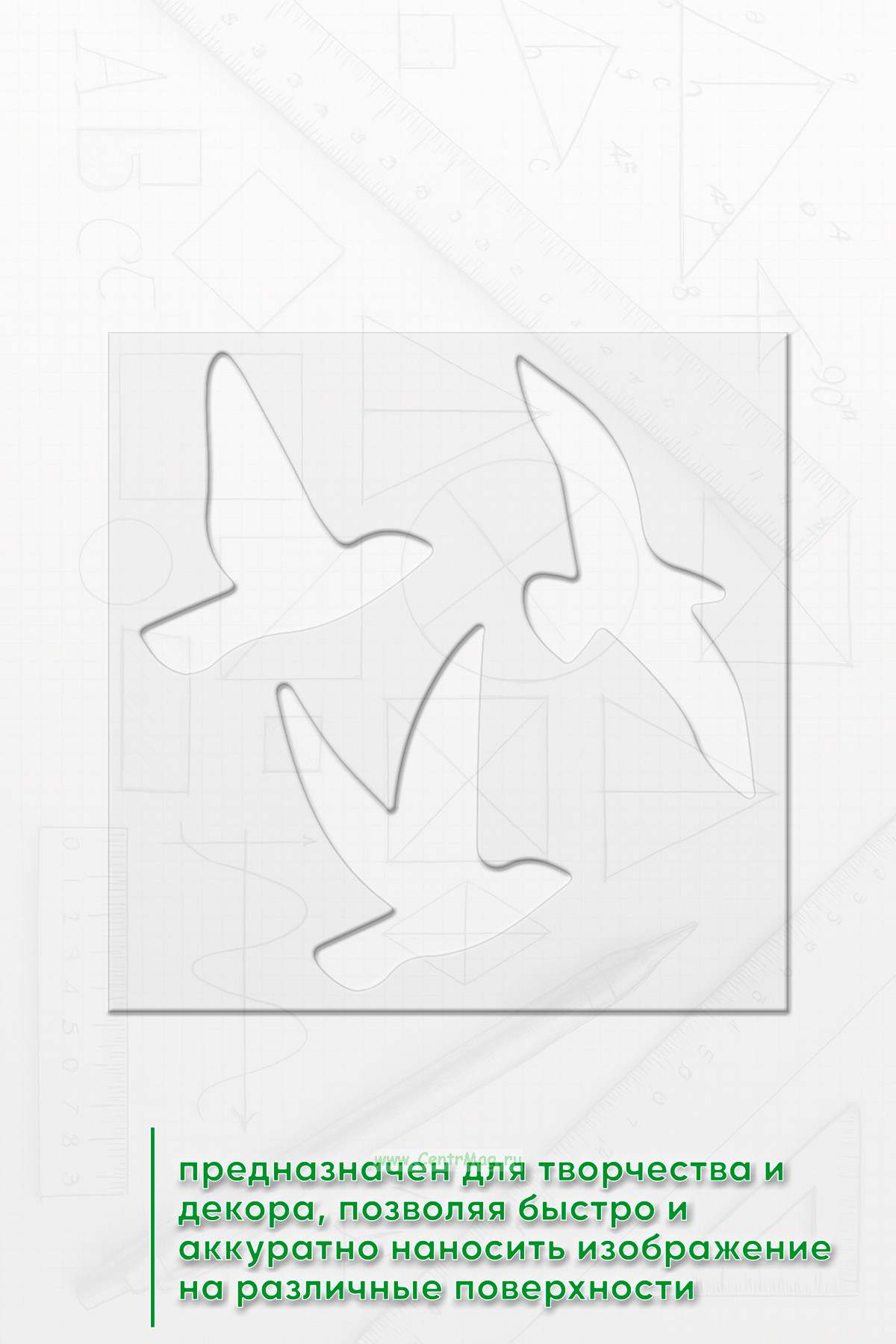 Трафарет предназначен для творчества и декора, позволяя быстро и аккуратно наносить изображение на различные поверхности. Подходит для создания декора на одежде, мебели, стенах, оформления блокнотов и открыток, а также для тематических плакатов и постеров.