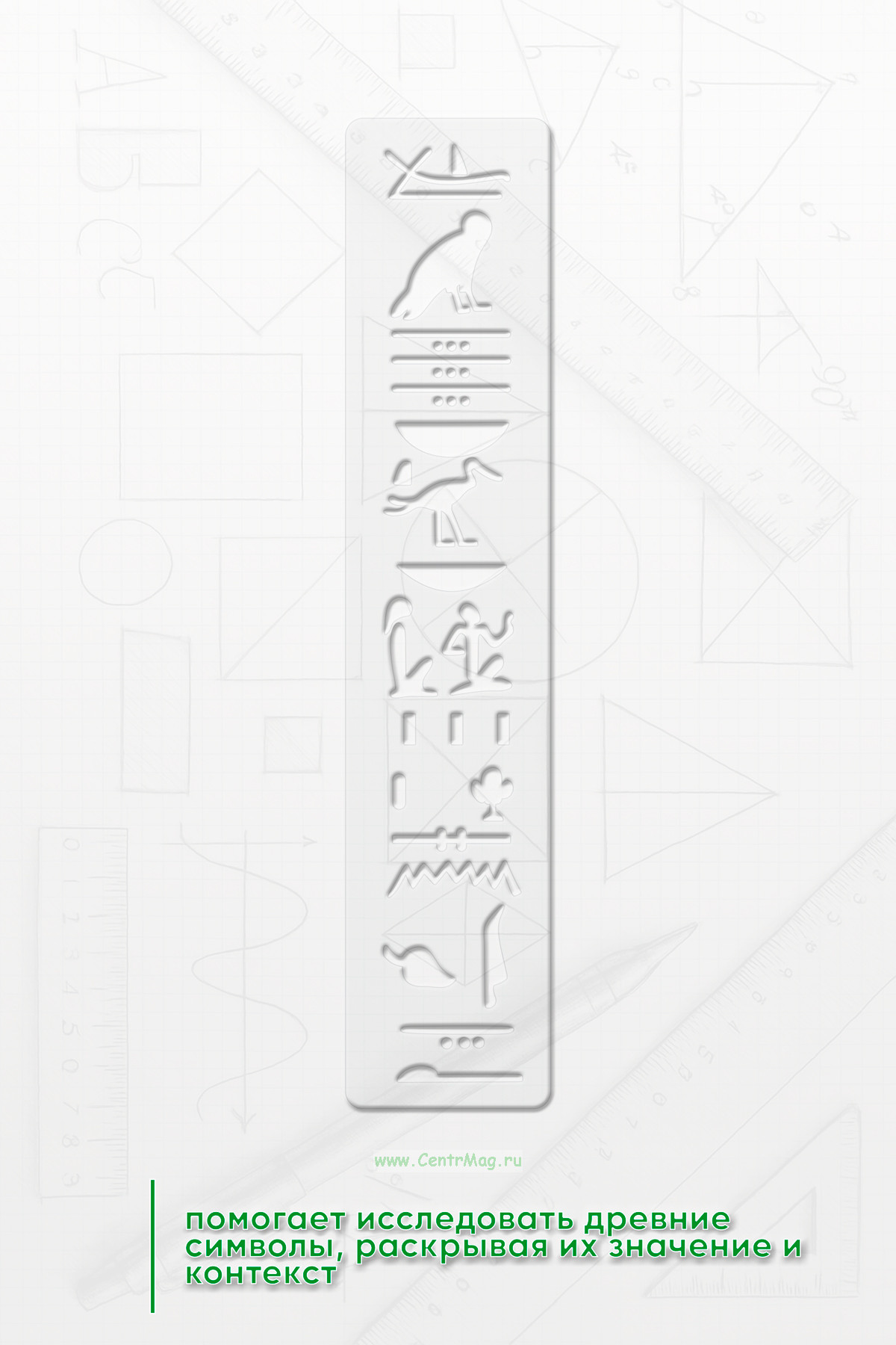 Трафарет "Символы времени" помогает исследовать древние символы, раскрывая их значение и контекст. Он также может служить основой для креативных работ, таких как каллиграфия или графический дизайн.