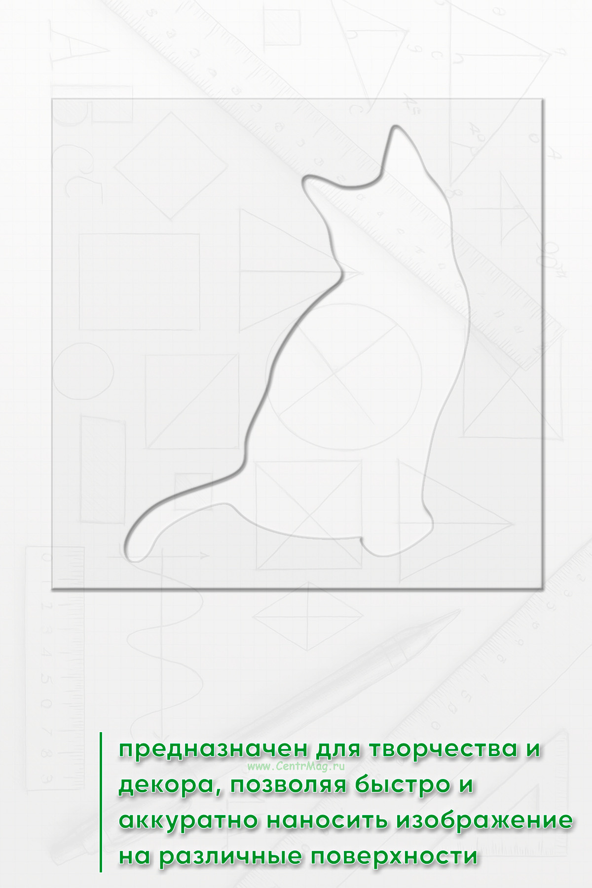 Трафарет предназначен для творчества и декора, позволяя быстро и аккуратно наносить изображение на различные поверхности. Подходит для создания декора на одежде, мебели, стенах, оформления блокнотов и открыток, а также для тематических плакатов и постеров.
