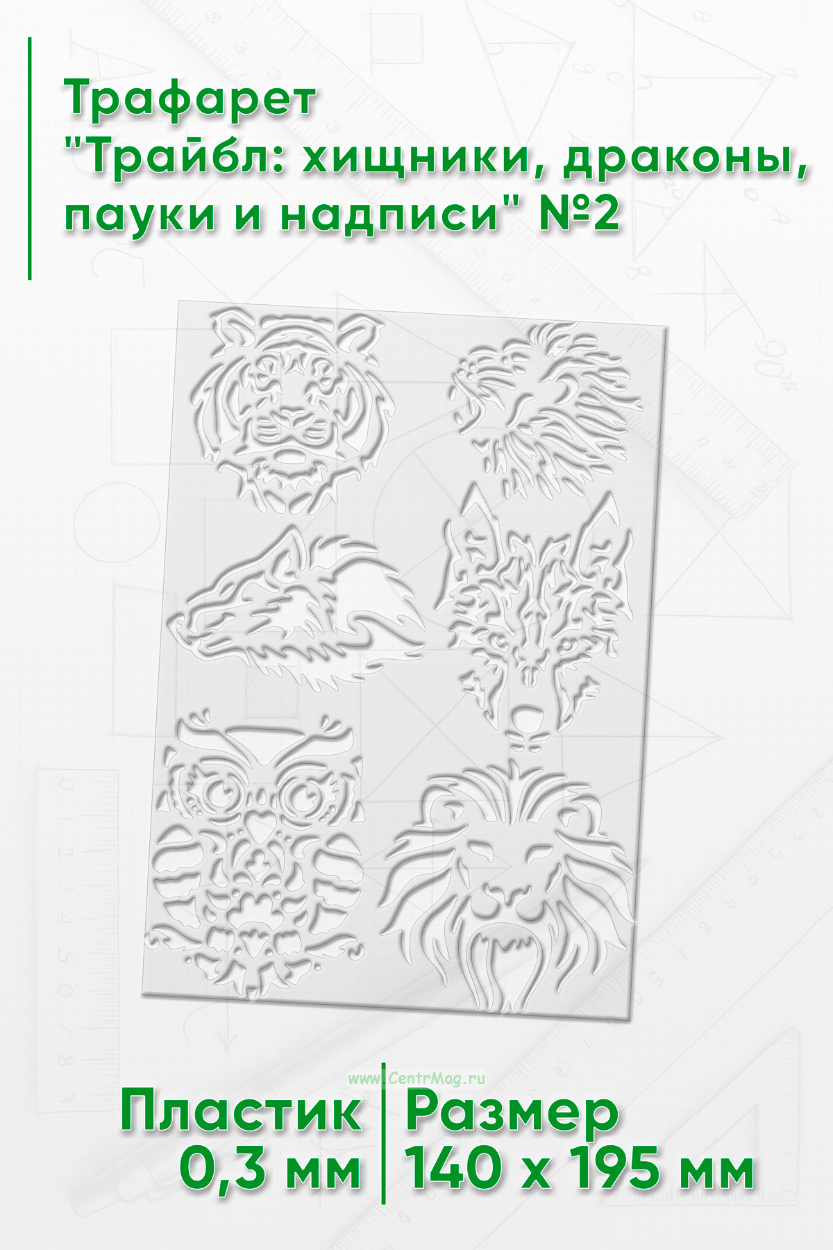 Трафарет "Трайбл: хищники, драконы, пауки и надписи" №1 (160 руб.)