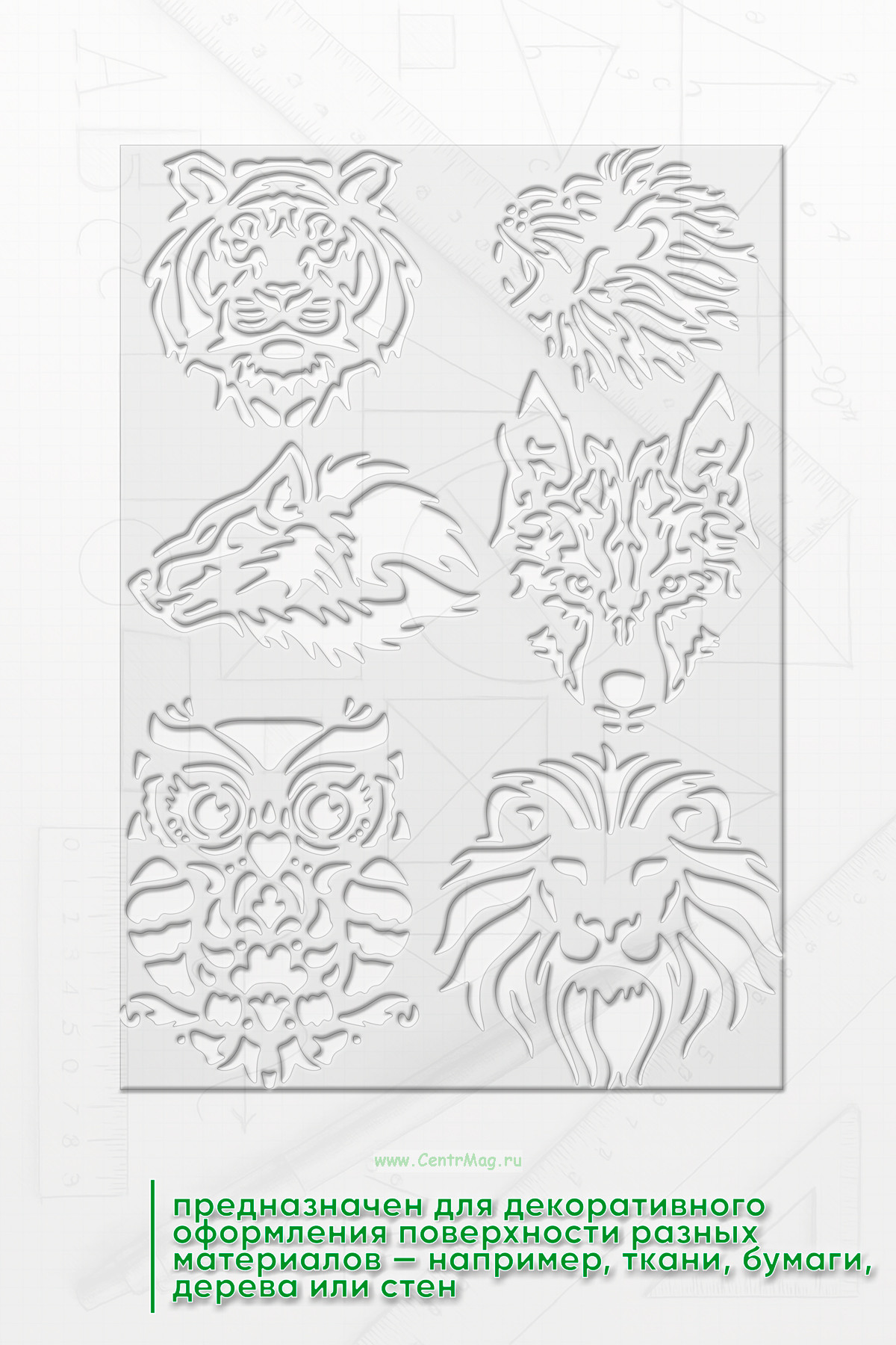 Трафарет "Трайбл: хищники, драконы, пауки и надписи" предназначен для декоративного оформления поверхности разных материалов — например, ткани, бумаги, дерева или стен.