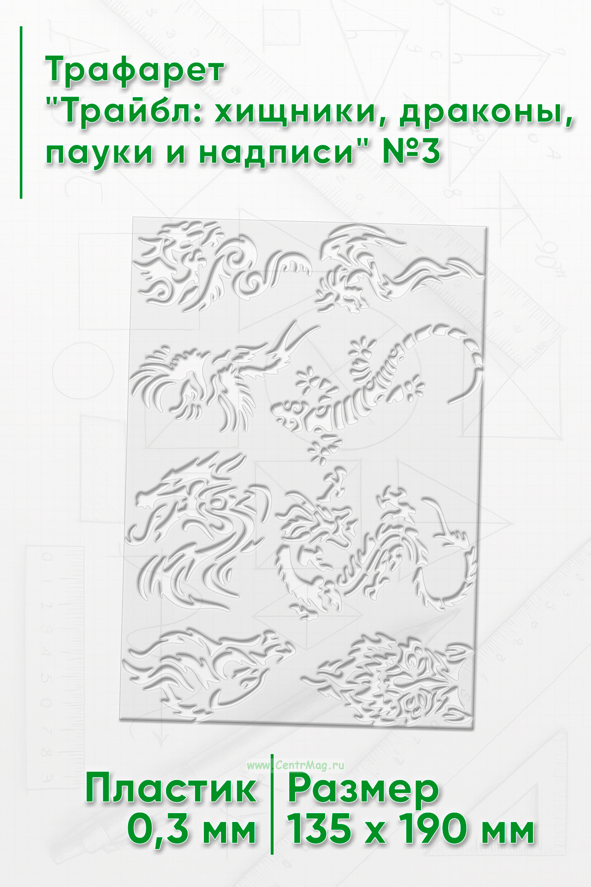 Трафарет "Трайбл: хищники, драконы, пауки и надписи" №4 (160 руб.)