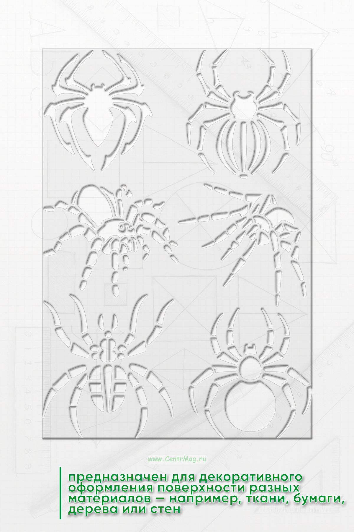 Трафарет "Трайбл: хищники, драконы, пауки и надписи" предназначен для декоративного оформления поверхности разных материалов — например, ткани, бумаги, дерева или стен.