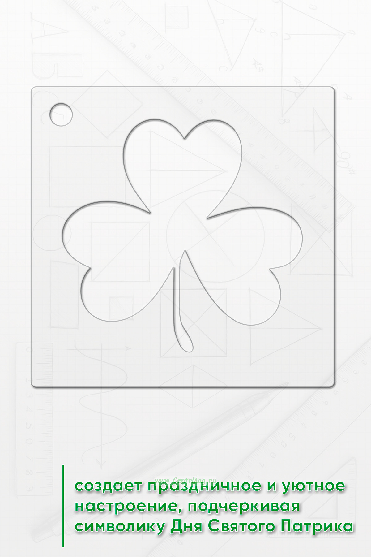 Трафарет создает праздничное и уютное настроение, подчеркивая символику Дня Святого Патрика.