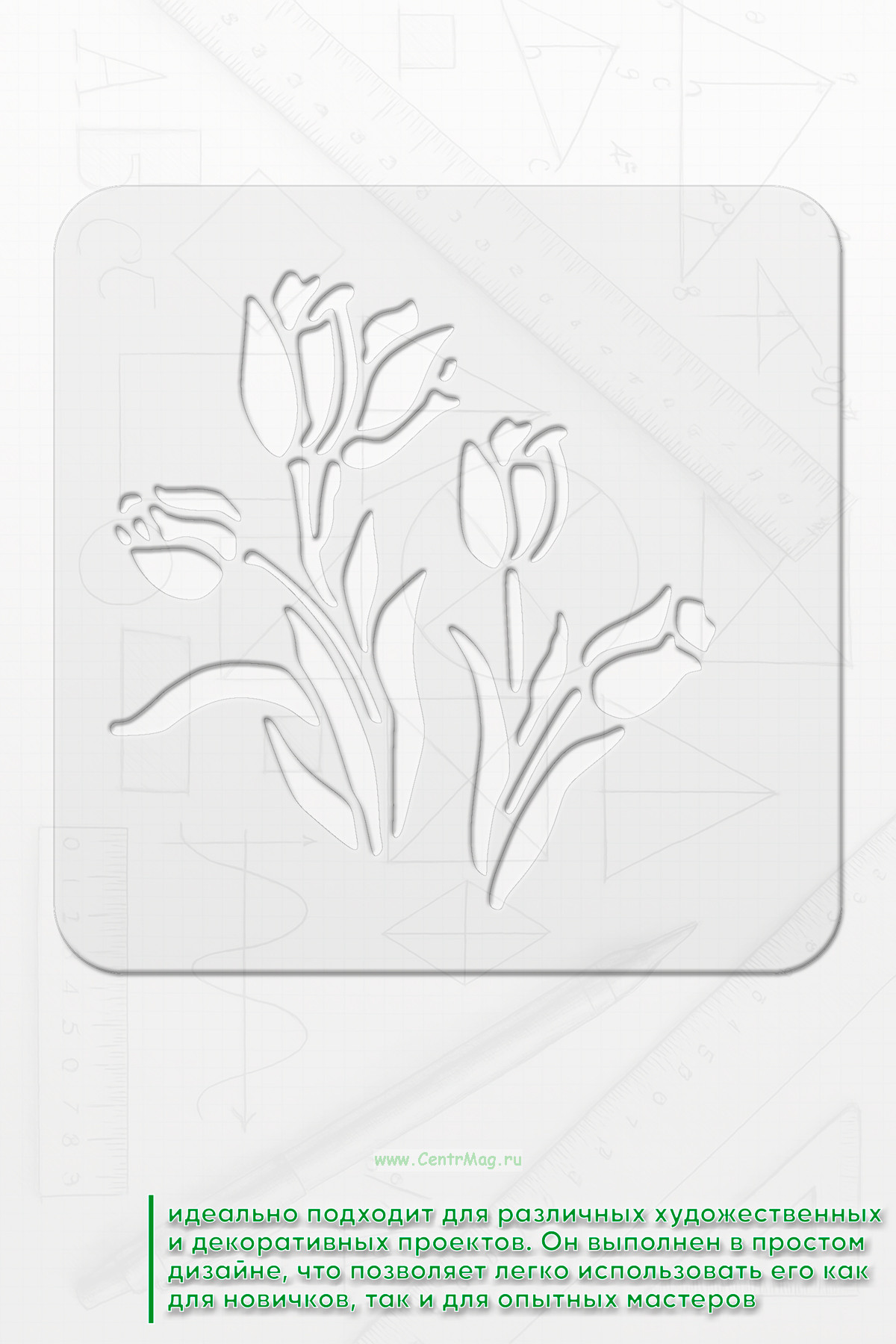 Трафарет идеально подходит для различных художественных и декоративных проектов. Он выполнен в простом дизайне, что позволяет легко использовать его как для новичков, так и для опытных мастеров