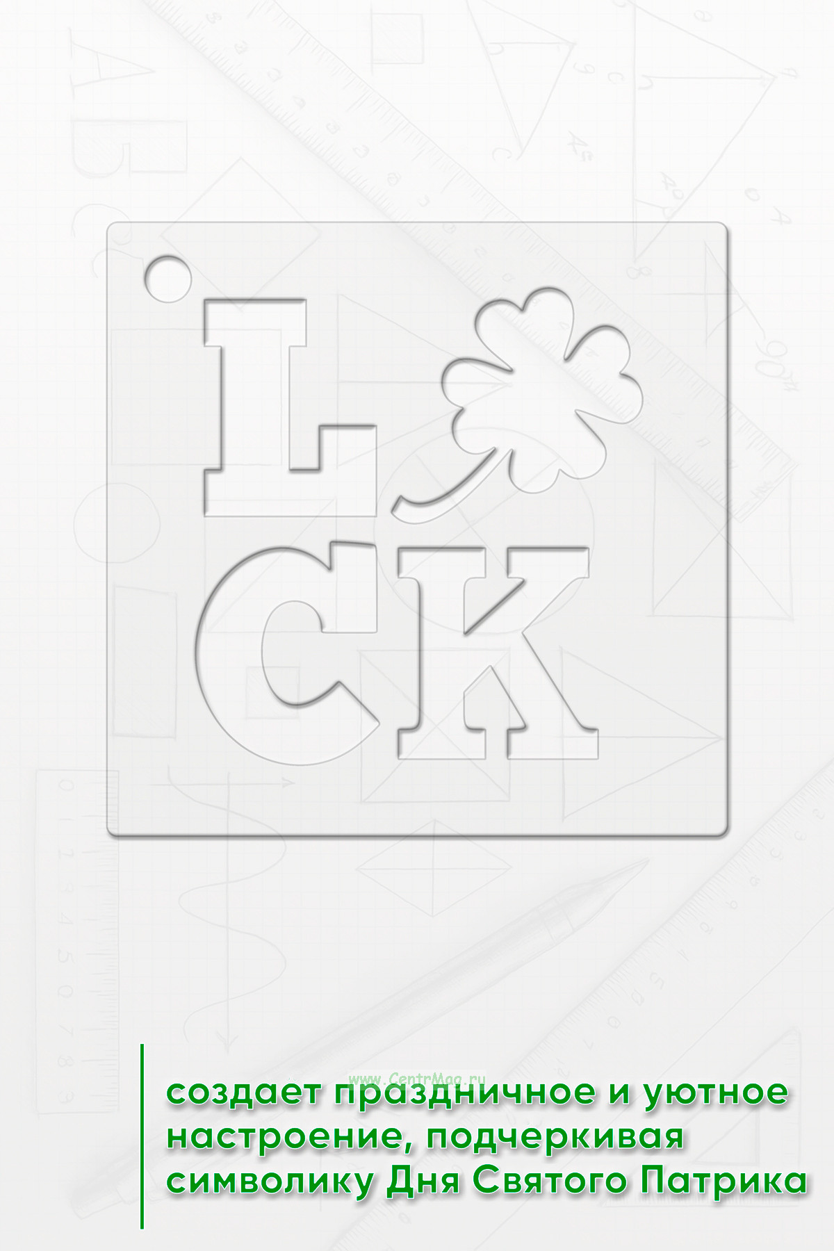 Трафарет создает праздничное и уютное настроение, подчеркивая символику Дня Святого Патрика.