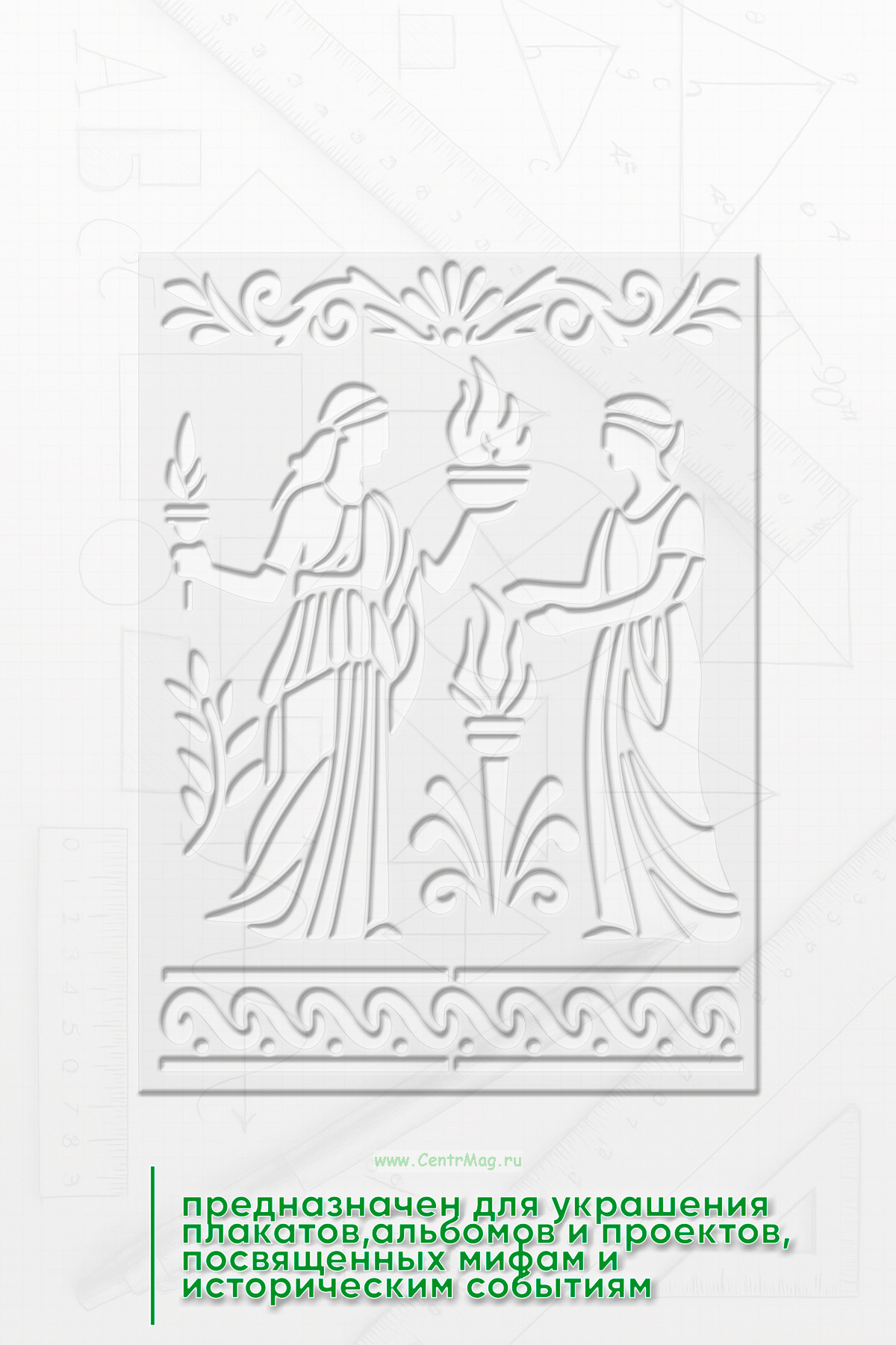 Трафарет "Вдохновение Мифов" предназначен для украшения плакатов, альбомов и проектов, посвящённых мифам и историческим событиям древних цивилизаций. Он помогает визуально подчеркнуть тему древних легенд и придает работе атмосферу таинственности и исторической глубины.