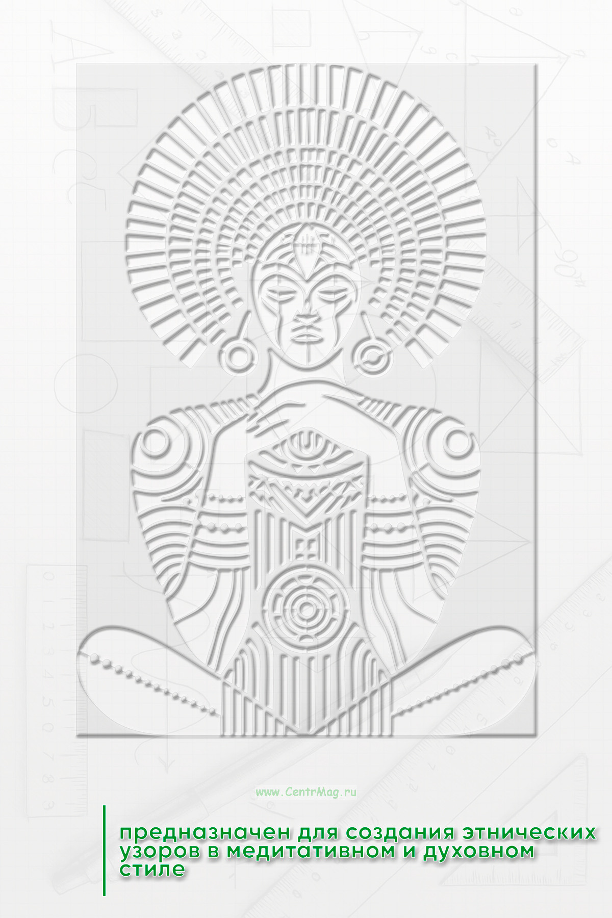 Трафарет "Венец Гармонии" предназначен для создания этнических узоров в медитативном и духовном стиле, идеально подходя для татуировок, графических принтов на одежде или декоре пространств, подчёркивая темы внутренней силы и культурного наследия.