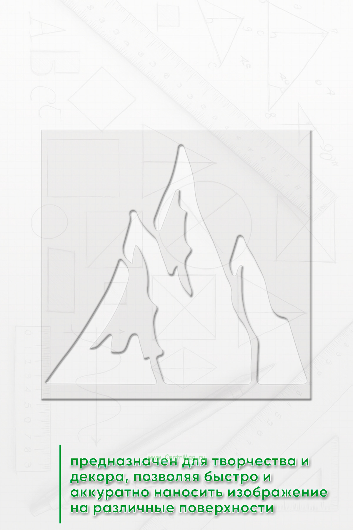 Трафарет предназначен для творчества и декора, позволяя быстро и аккуратно наносить изображение на различные поверхности. Подходит для создания декора на одежде, мебели, стенах, оформления блокнотов и открыток, а также для тематических плакатов и постеров.