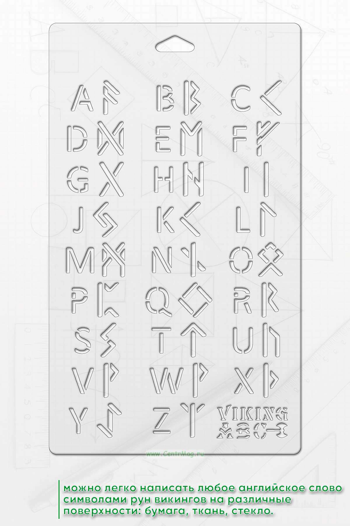 Трафарет с английскими и руническими символами является популярным инструментом для создания рисунков и декоративных элементов. С помощью трафарета можно легко написать любое английское слово символами рун викингов на различные поверхности: бумага, ткань, стекло.