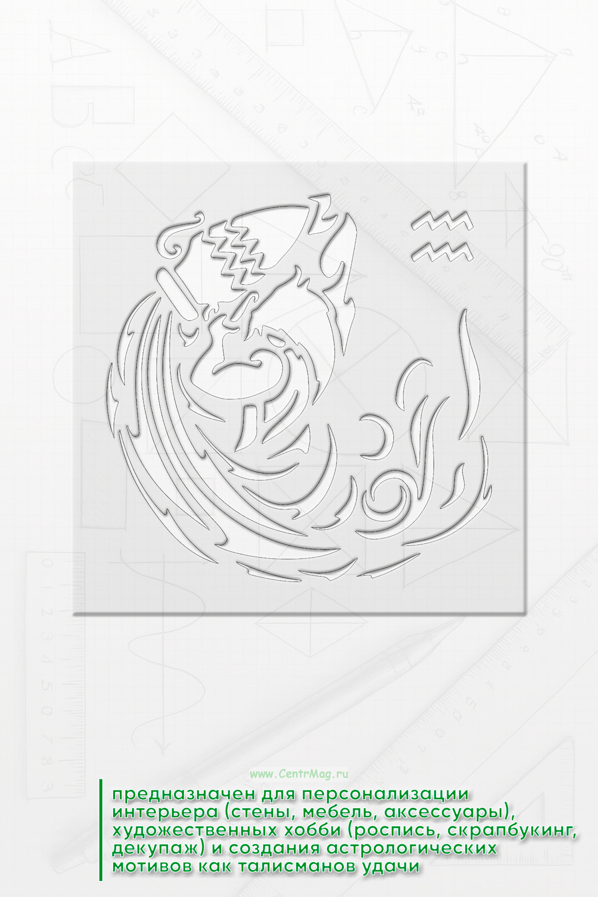 Трафарет предназначен для творческого и декоративного использования, позволяя легко наносить изображения на различные поверхности. Они идеальны для персонализации интерьера (стены, мебель, аксессуары), художественных хобби (роспись, скрапбукинг, декупаж) и создания астрологических мотивов как талисманов удачи.
