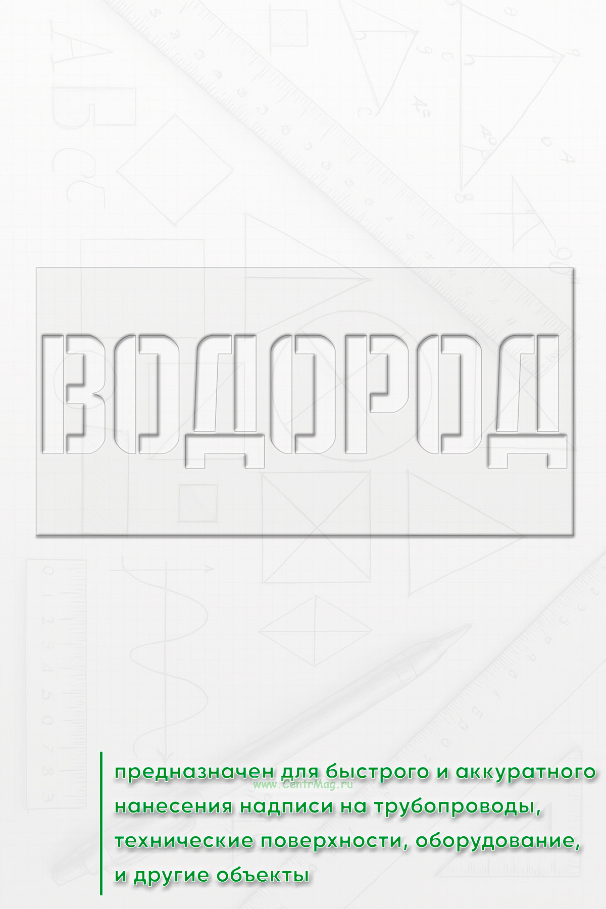 Трафарет "Водород" предназначен для быстрого и аккуратного нанесения надписи на трубопроводы, технические поверхности, оборудование, шкафы и другие объекты.