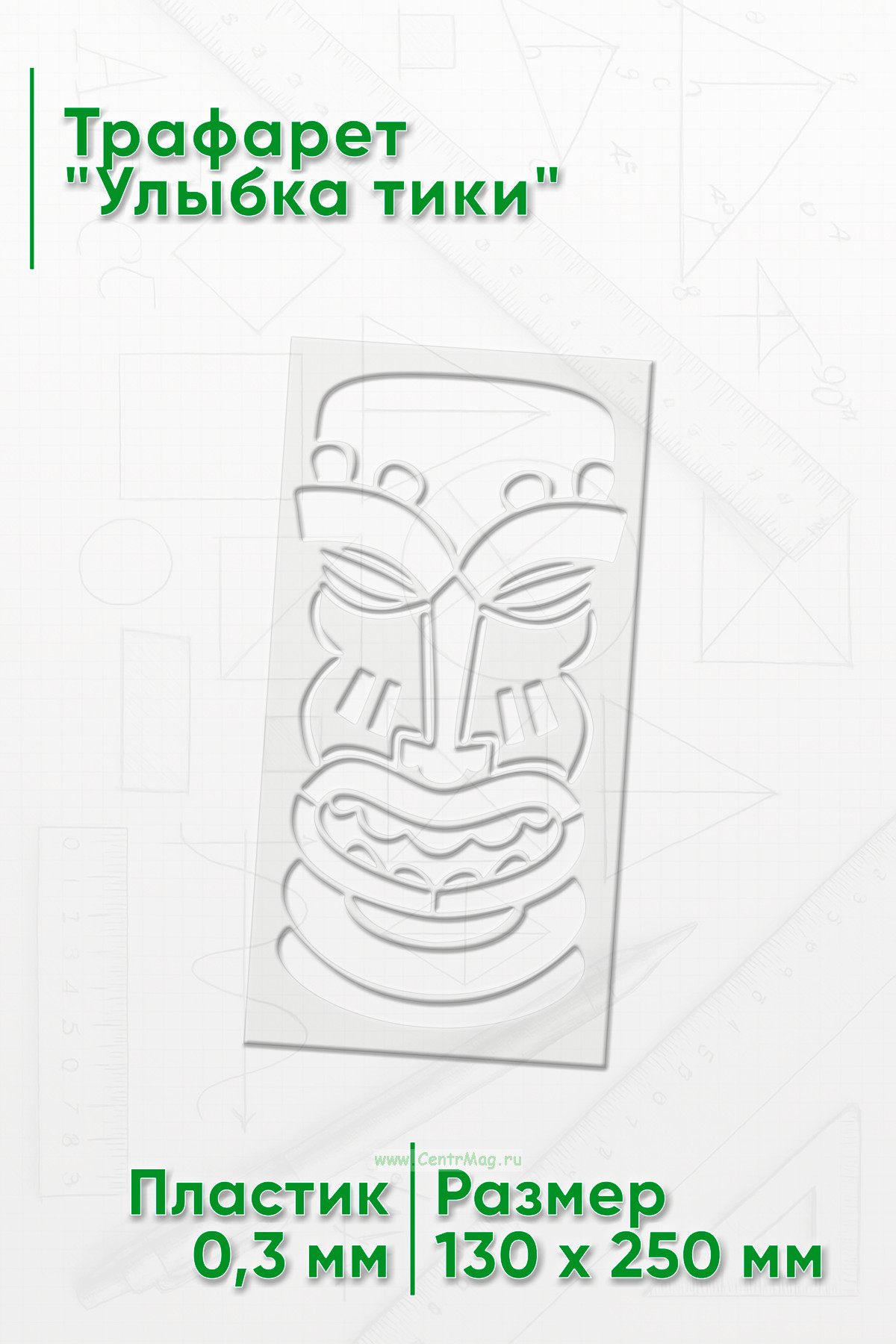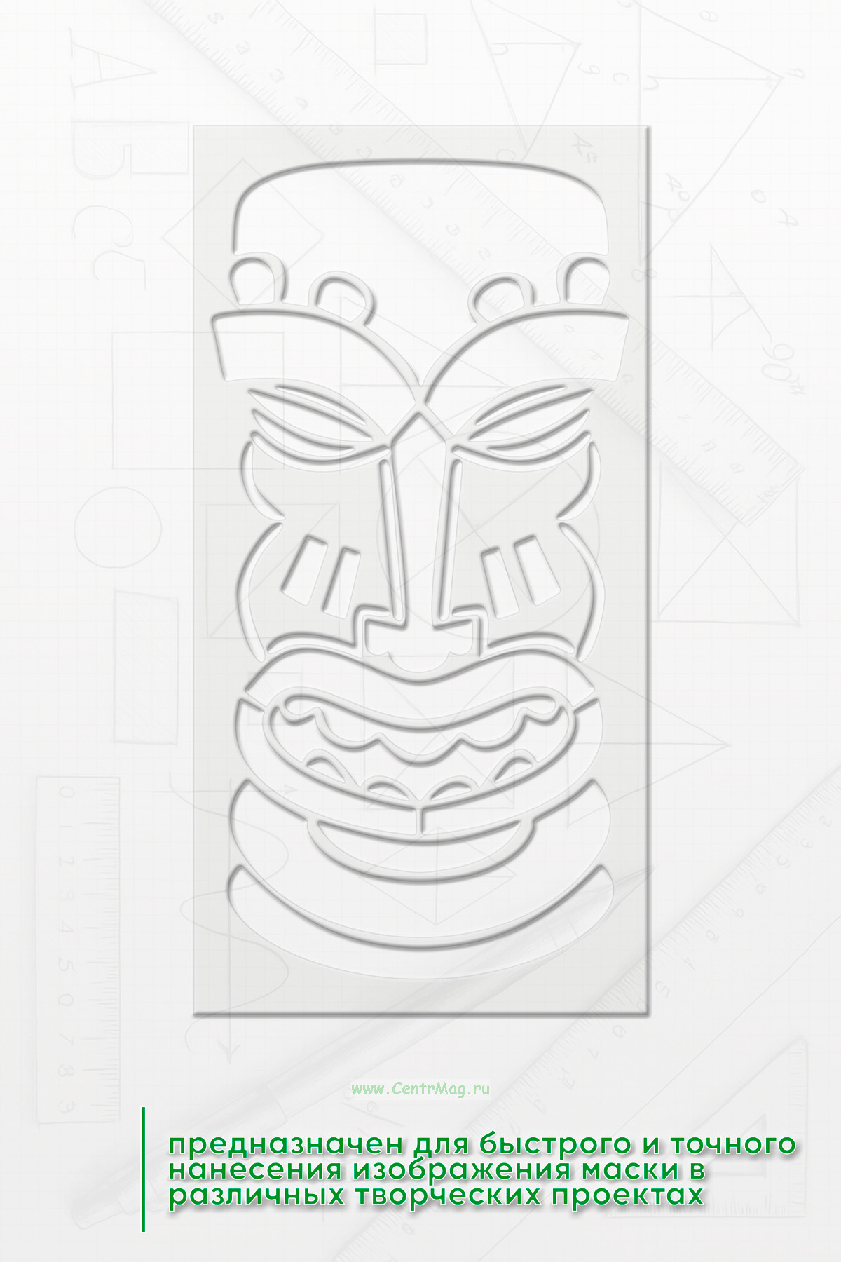 Трафарет "Улыбка тики" предназначен для быстрого и точного нанесения изображения маски в различных творческих проектах. Он помогает создать эффект аутентичной древней маски, подчеркивая стиль и атмосферу исторического или фантастического образа.