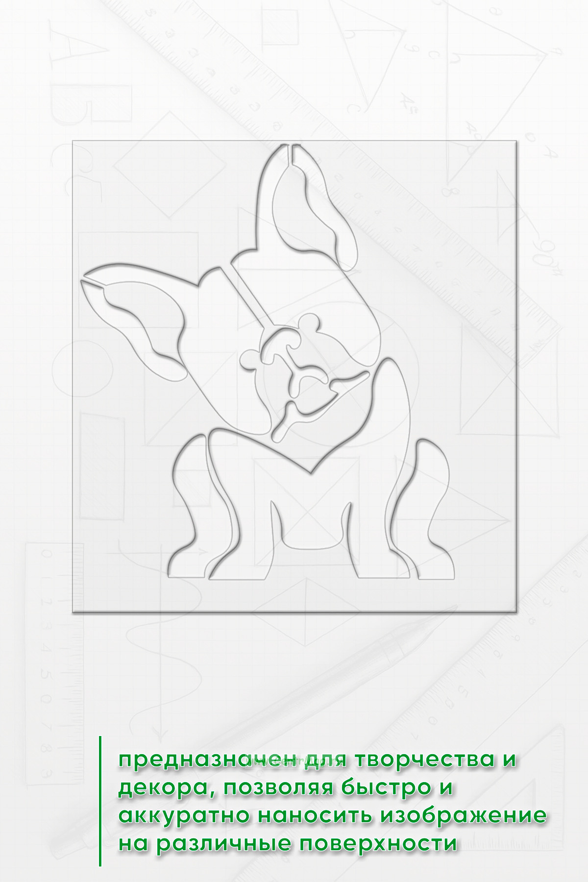 Трафарет предназначен для творчества и декора, позволяя быстро и аккуратно наносить изображение на различные поверхности.Подходит для создания декора на одежде, мебели, стенах, оформления блокнотов и открыток, а также для тематических плакатов и постеров.
