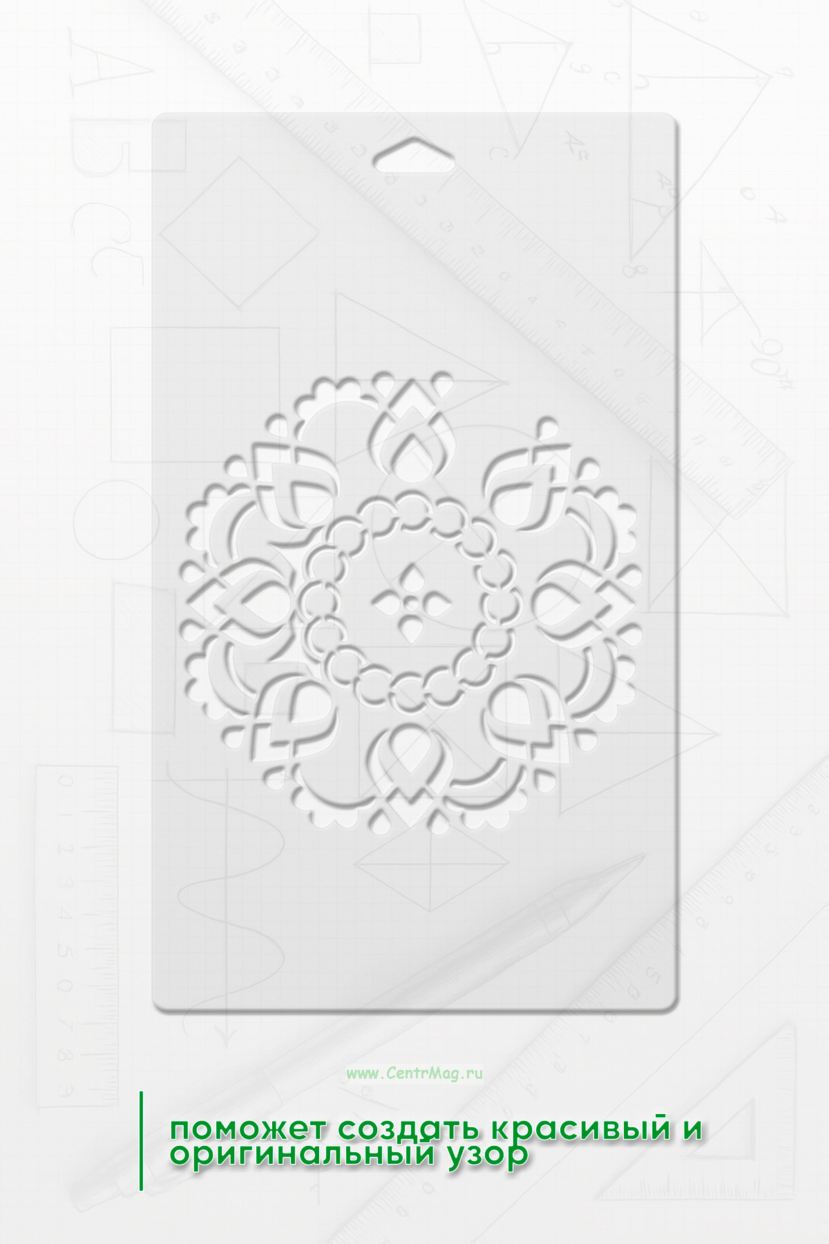 Трафарет поможет создать красивый и оригинальный узор. Идеально подходит для тех, кто хочет добавить индивидуальности своему творчеству.