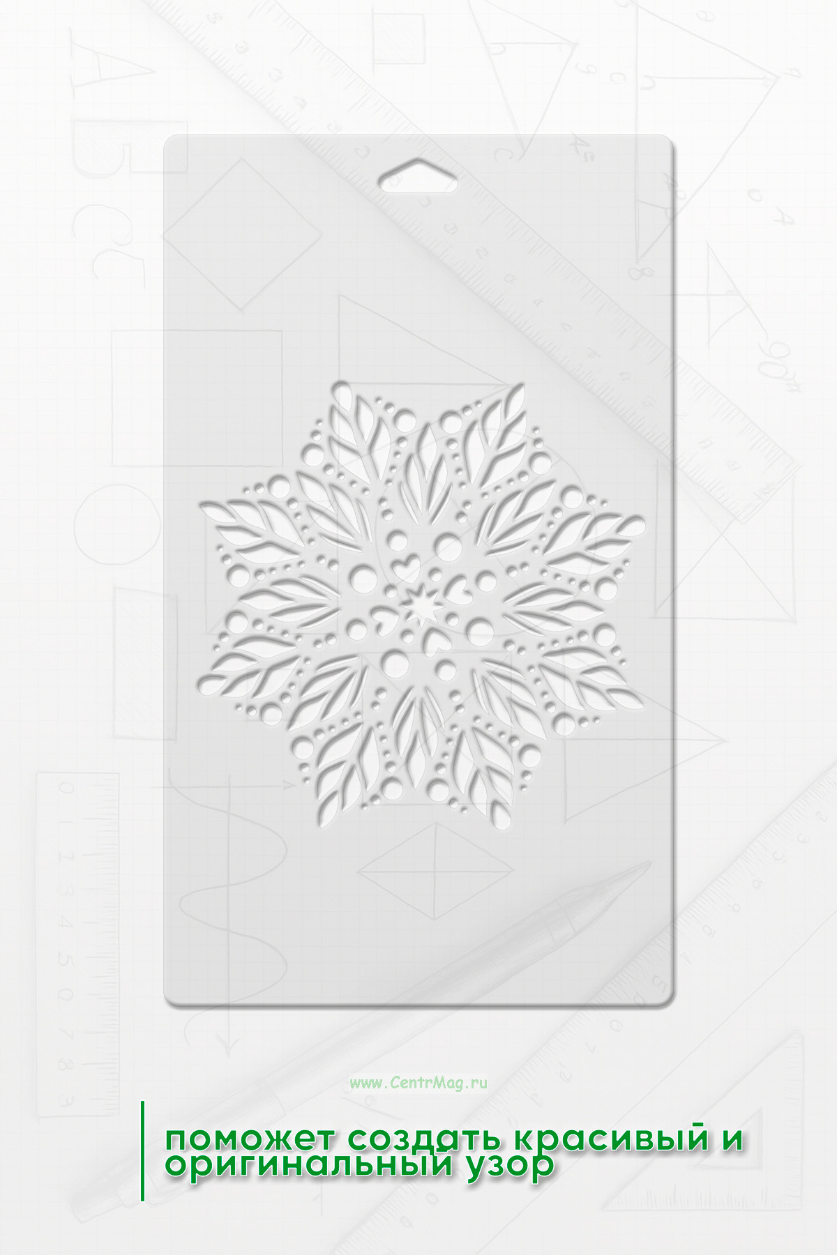 Трафарет поможет создать красивый и оригинальный узор. Идеально подходит для тех, кто хочет добавить индивидуальности своему творчеству.