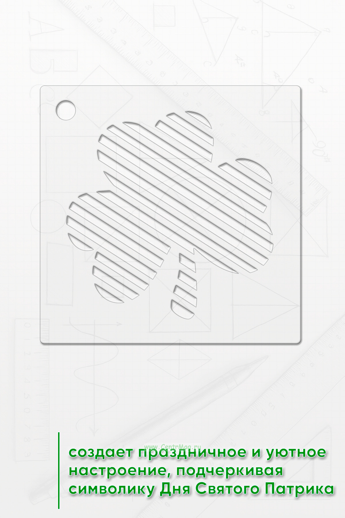 Трафарет создает праздничное и уютное настроение, подчеркивая символику Дня Святого Патрика.