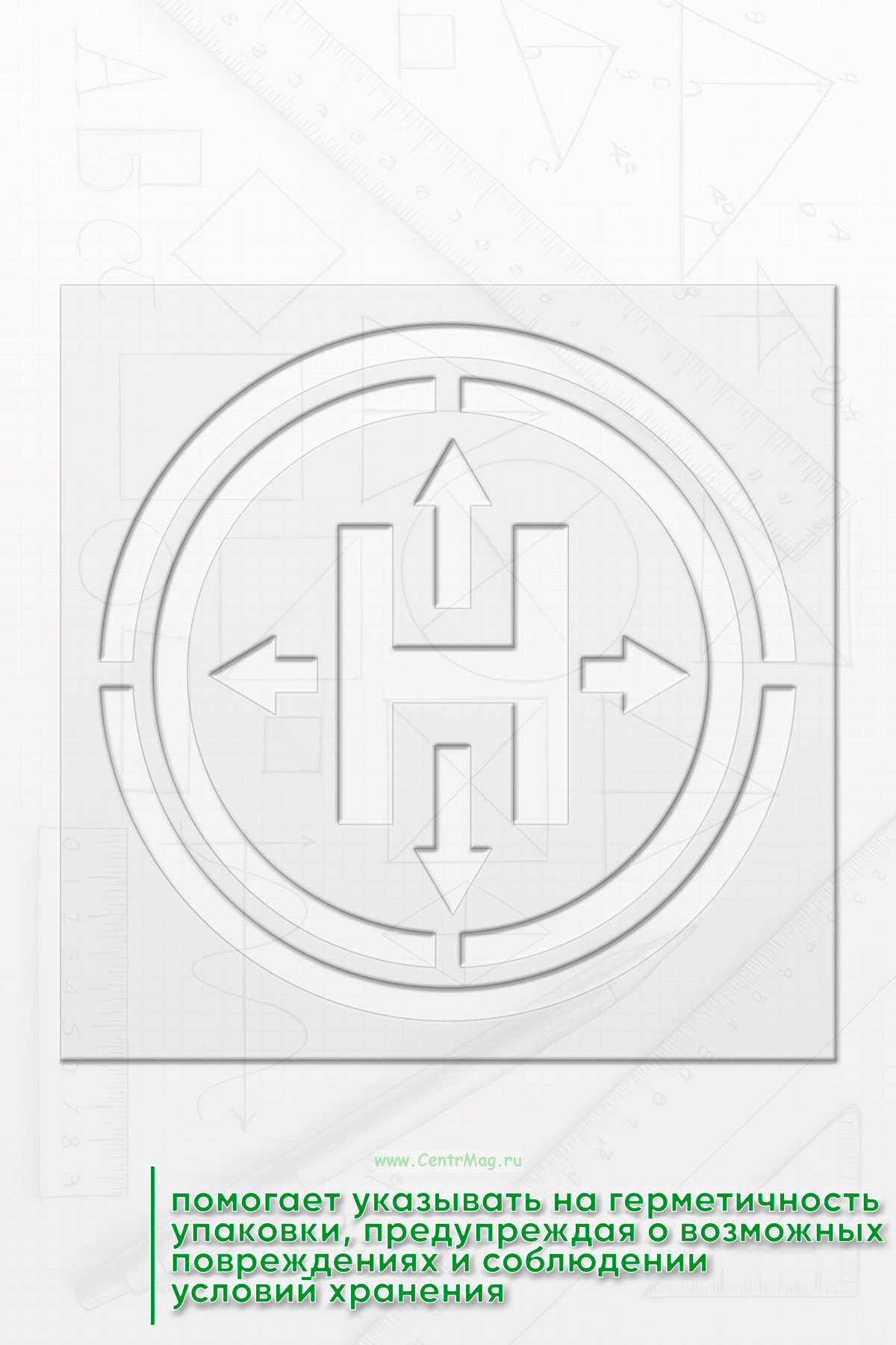 Трафарет Знак для упаковки "Герметичная упаковка" предназначен для обозначения товаров, обеспечивая их правильную маркировку и защиту. Он помогает указывать на герметичность упаковки, предупреждая о возможных повреждениях и соблюдении условий хранения.