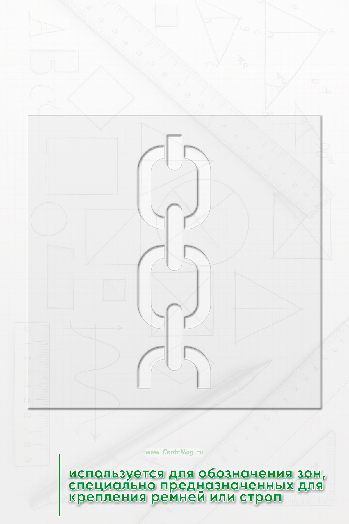 Трафарет Знак для упаковки "Место строповки" используется для обозначения зон, специально предназначенных для крепления ремней или строп. Он помогает обеспечить правильную и безопасную фиксацию груза при погрузке и транспортировке.