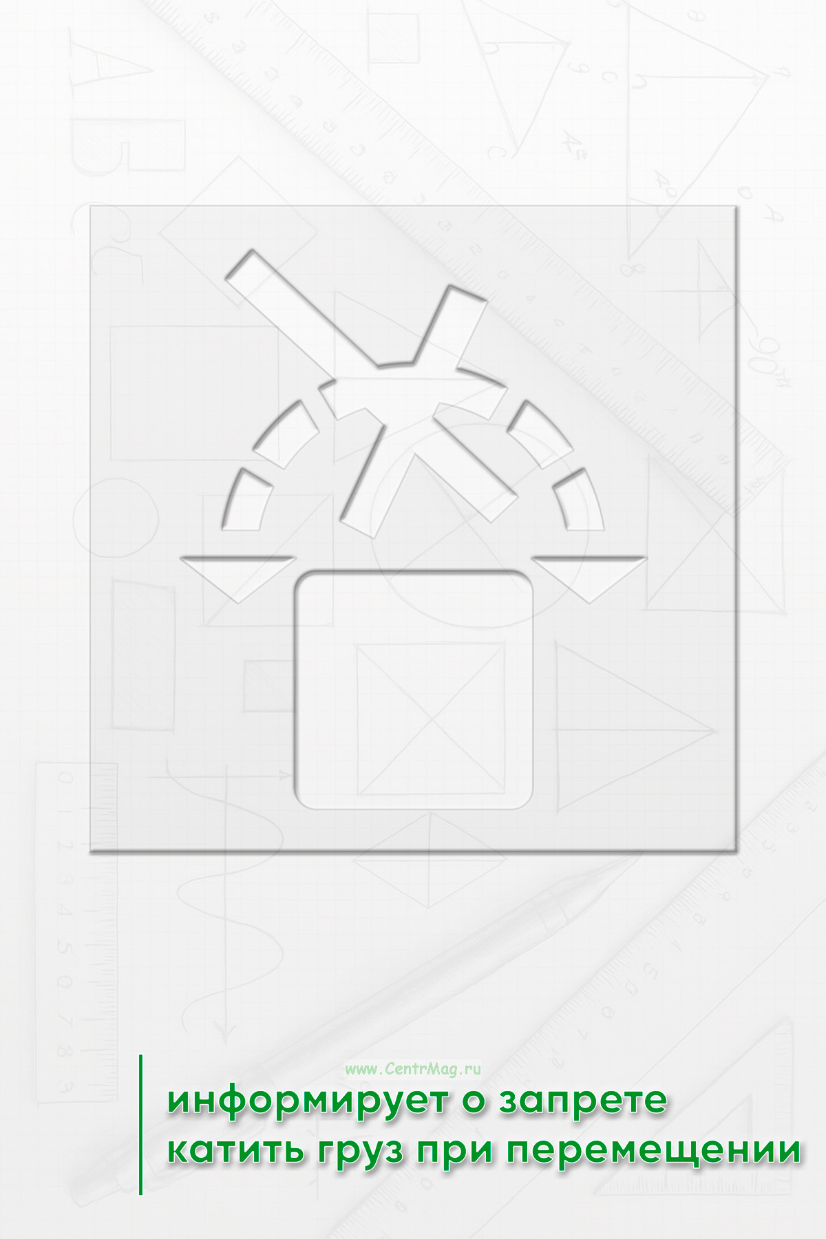Информирует о запрете катить груз при перемещении.