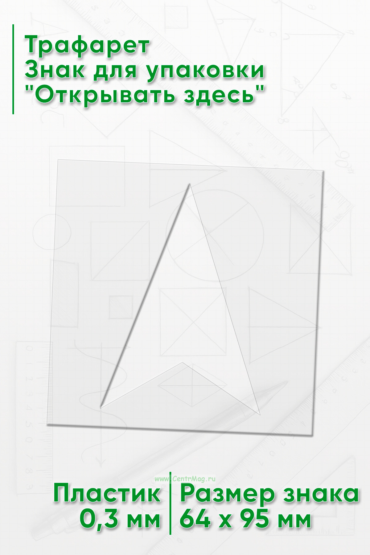 Трафарет Знак для упаковки "Открывать здесь" 95х138 мм (95 руб.)