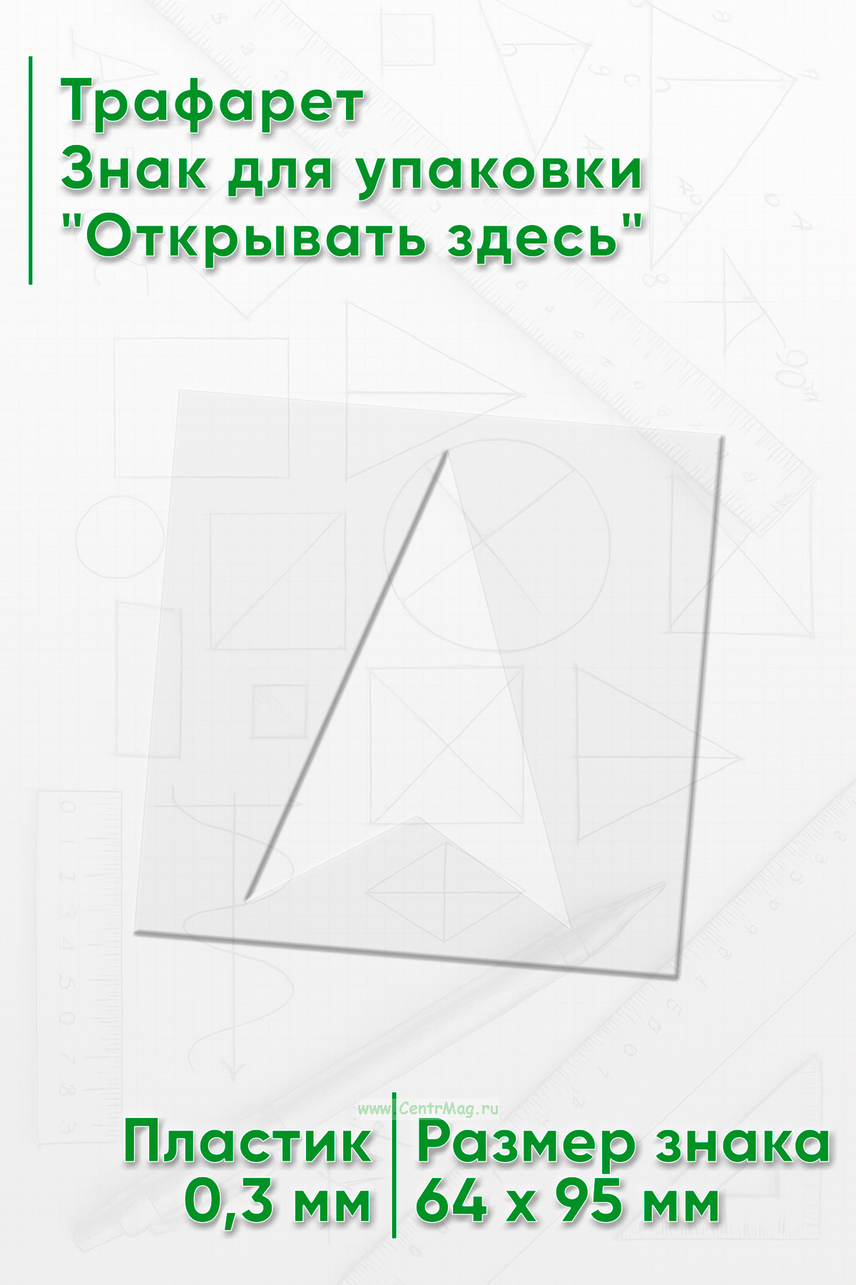 Трафарет Знак для упаковки "Открывать здесь" 42х64 мм (45 руб.)