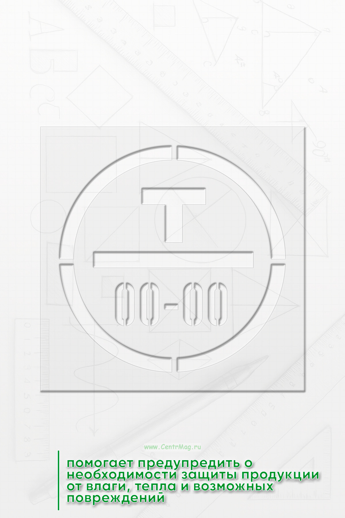 Трафарет Знак для упаковки "Тропическая упаковка" предназначен для маркировки товаров, которые требуют особых условий транспортировки и хранения в тропическом климате. Он помогает предупредить о необходимости защиты продукции от влаги, тепла и возможных повреждений.