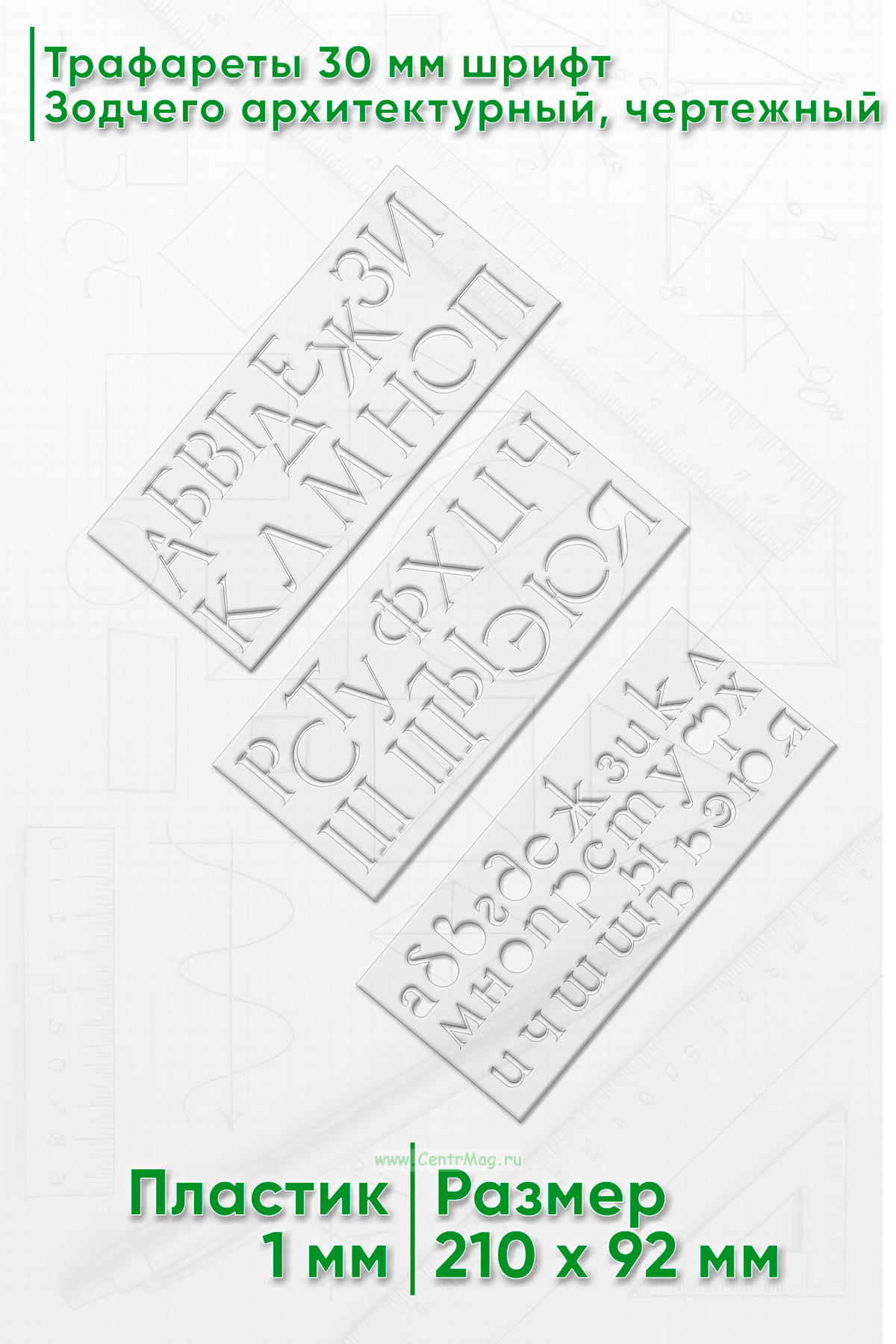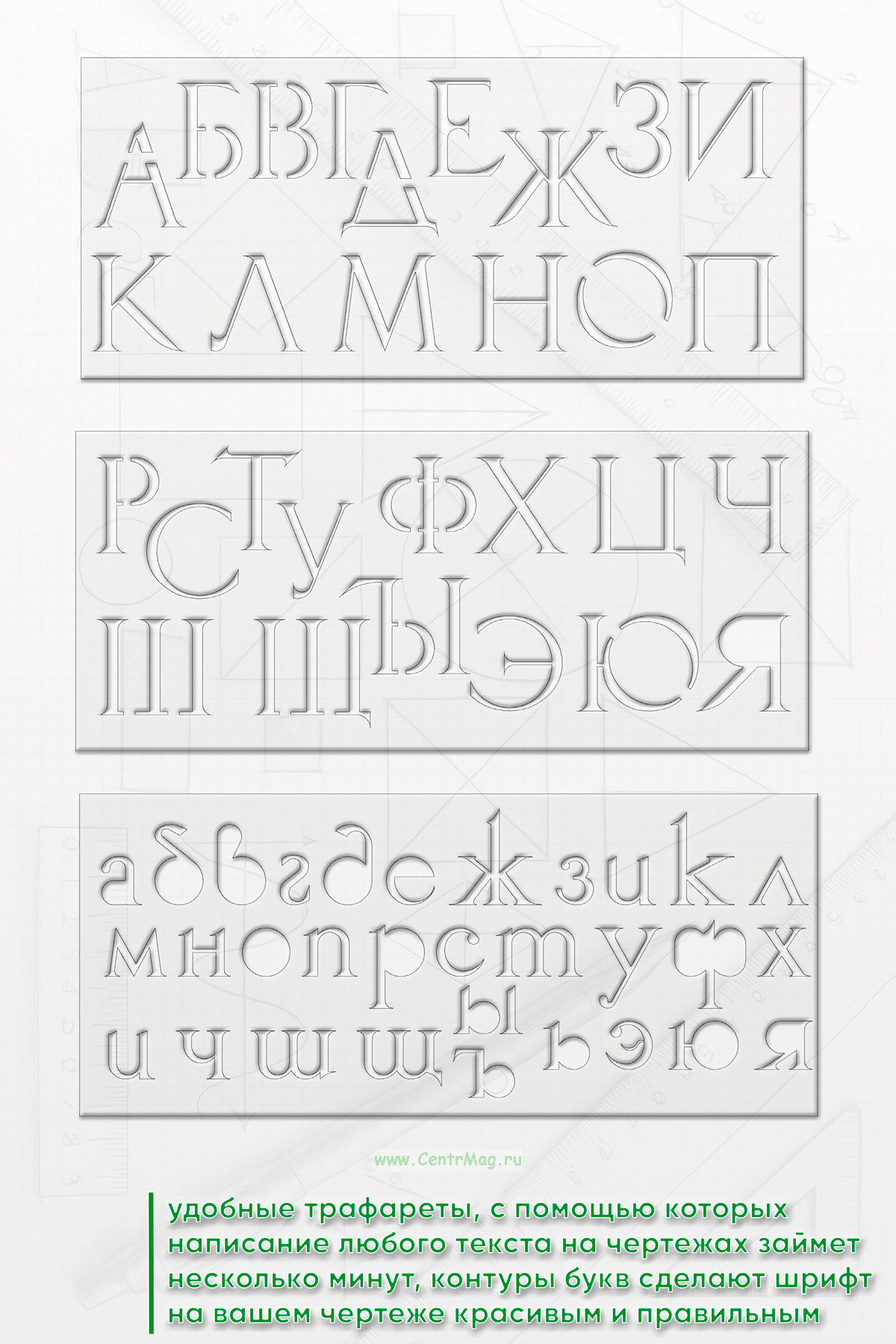 Мы знаем, сколько времени и сил уходит на правильное вырисовывание архитектурного шрифта Зодчего. И поэтому создали для Вас удобные трафареты, с помощью которых написание любого текста на чертежах займет несколько минут! Контуры букв сделают шрифт на Вашем чертеже красивым и правильным, а чертеж - визуально приятным и аккуратным. Размер трафаретов подобран так, что они поместятся в любую тетрадь, папку или файл. Мы используем гибкий долговечный пластик, который не ломается - наши трафареты ГОСТ прослужат Вам все годы учебы! Желаем легкой руки!