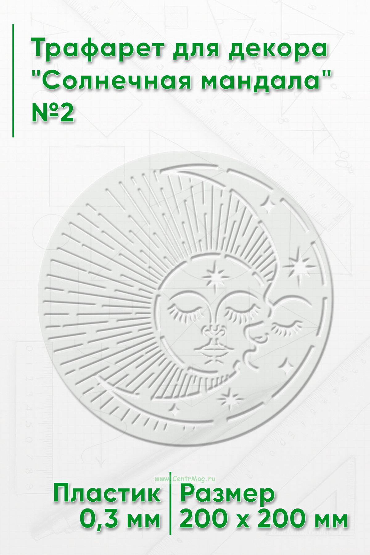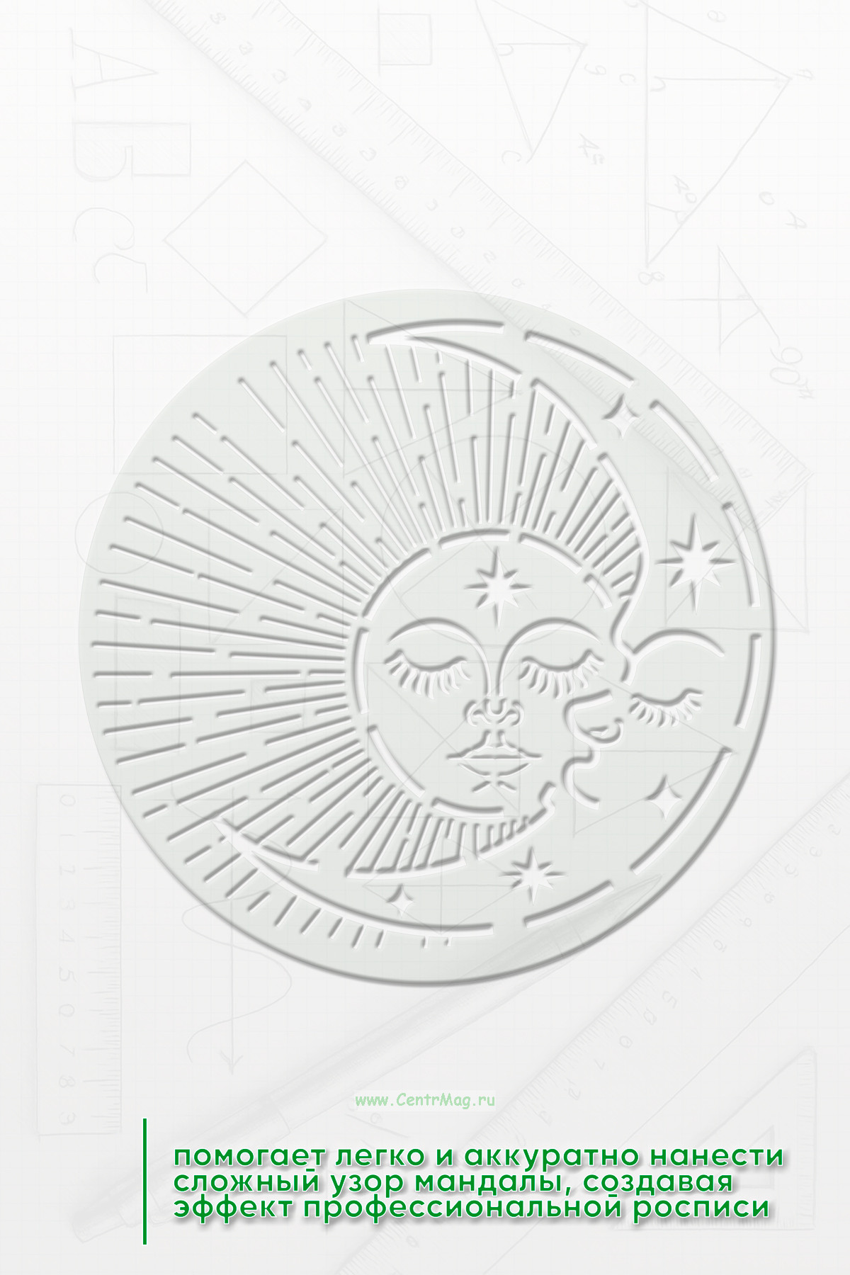 Трафарет для декора "Солнечная мандала" предназначен для создания красивых и гармоничных декоративных элементов на различных поверхностях с помощью нанесения рисунка в виде солнечной мандалы.
