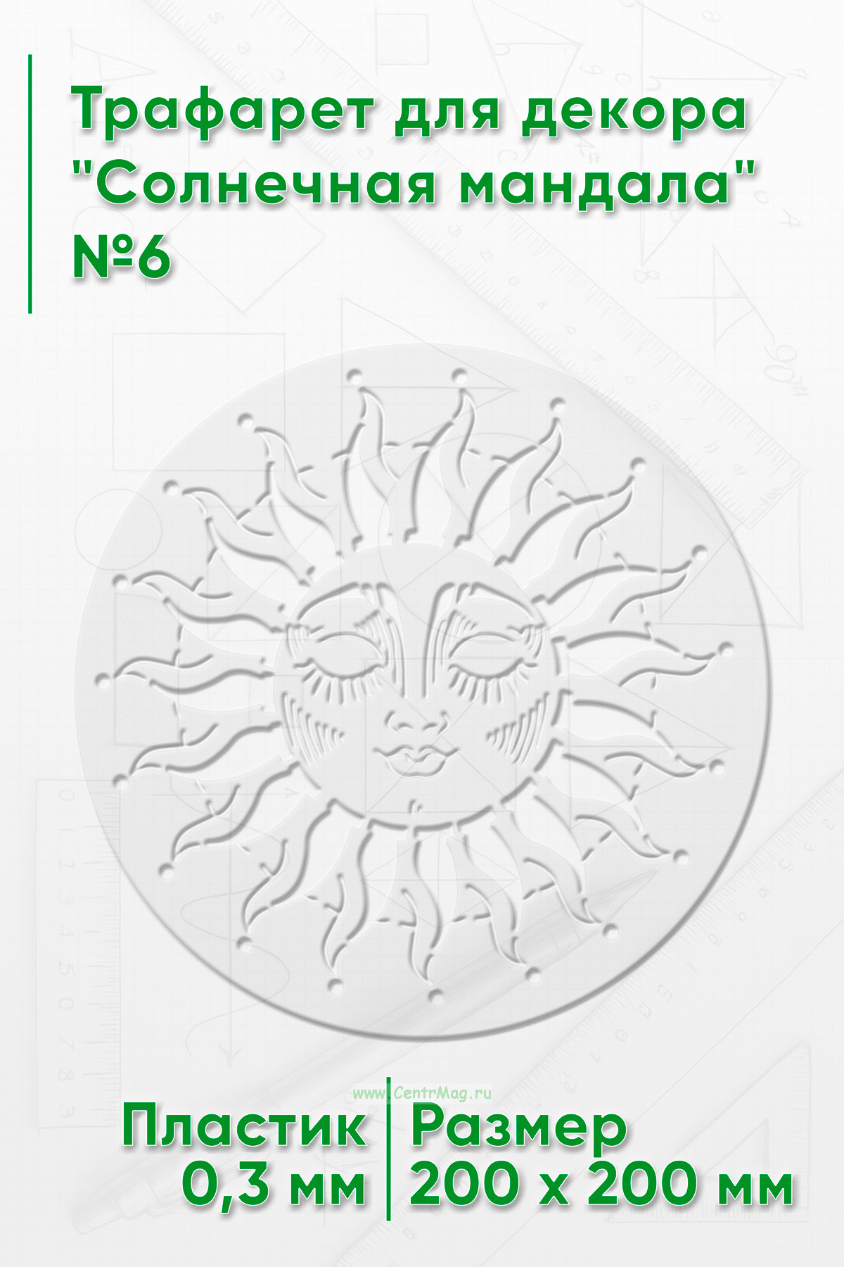 Трафарет для декора "Солнечная мандала" предназначен для создания красивых и гармоничных декоративных элементов на различных поверхностях с помощью нанесения рисунка в виде солнечной мандалы.