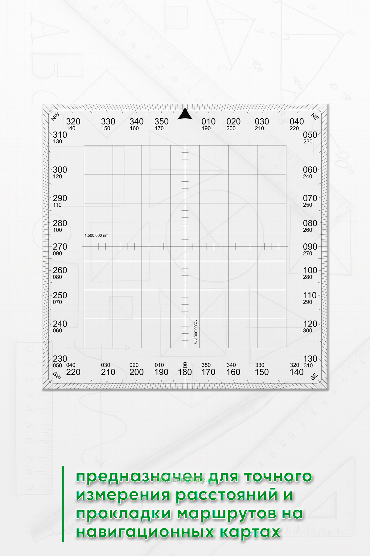 Транспортир NPP010 PP-1 предназначен для точного измерения расстояний и прокладки маршрутов на навигационных картах.