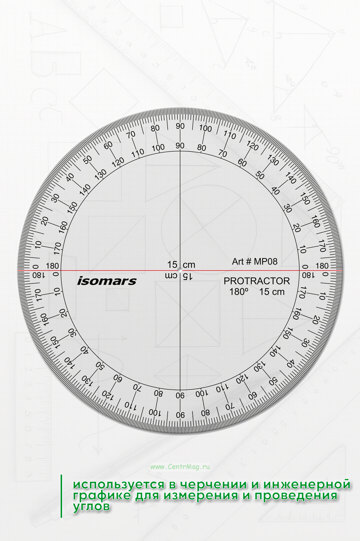 Транспортир зеркальный — инструмент, который используется в черчении и инженерной графике для измерения и проведения углов. Основное отличие зеркального транспортиров — наличие зеркальной поверхности, которая позволяет отображать изображение отражённого угла или линии, что помогает более точно и удобно работать с углами, особенно при переносе их с одного объекта на другой.