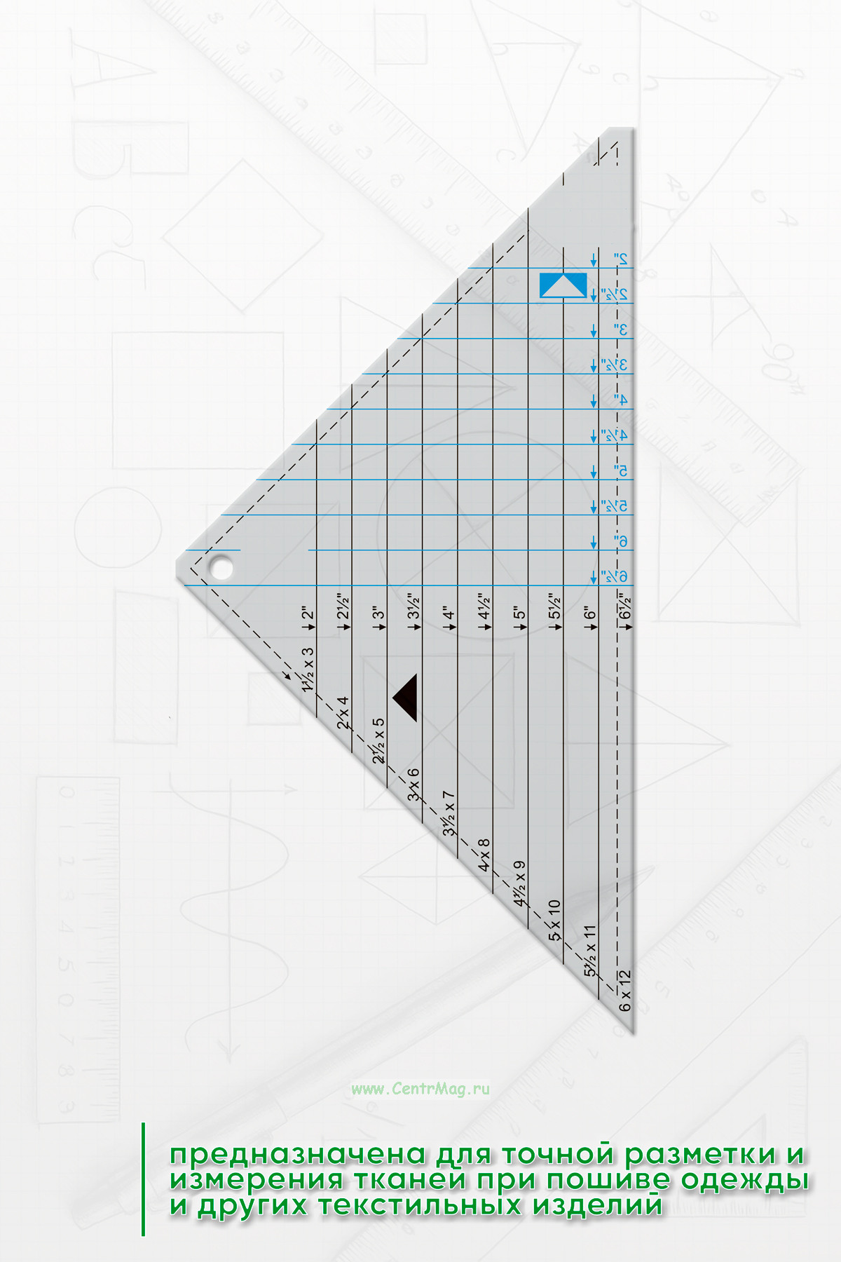 Треугольная линейка для стежки предназначена для точной разметки и измерения тканей при пошиве одежды и других текстильных изделий. Ее форма позволяет легко создавать прямые углы, линии и разметки в сложных местах, что важно для шитья, вытачек и других деталей.