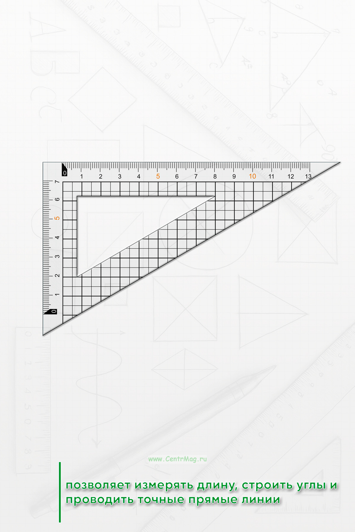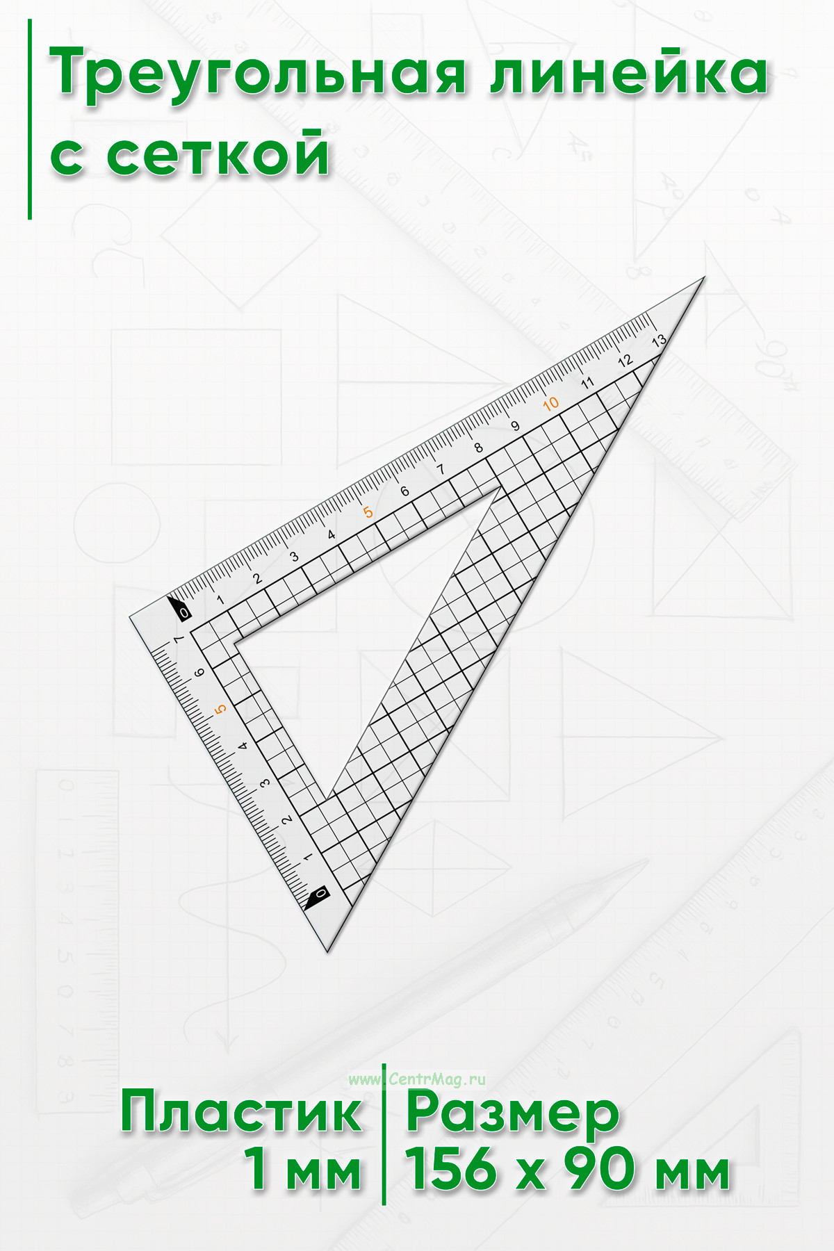 Треугольная линейка с сеткой позволяет измерять длину, строить углы и проводить точные прямые, параллельными и перпендикулярными линии.