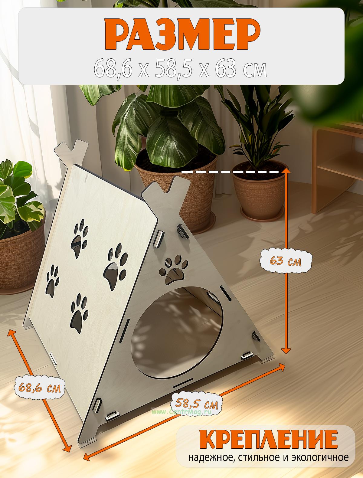 Домик для собак – идеальный уголок для вашего питомца! Этот стильный и прочный домик выполнен из высококачественной березовой фанеры, обеспечивая надежность и долговечность. Его треугольная форма не только выглядит элегантно, но и создает уютную атмосферу для вас и вашего питомца. Подходит для собак маленьких и средних размеров, обеспечивая им комфортное место для отдыха и уединения. Домик станет не только удобным местом для вашего любимца, но и стильным элементом вашего интерьера.