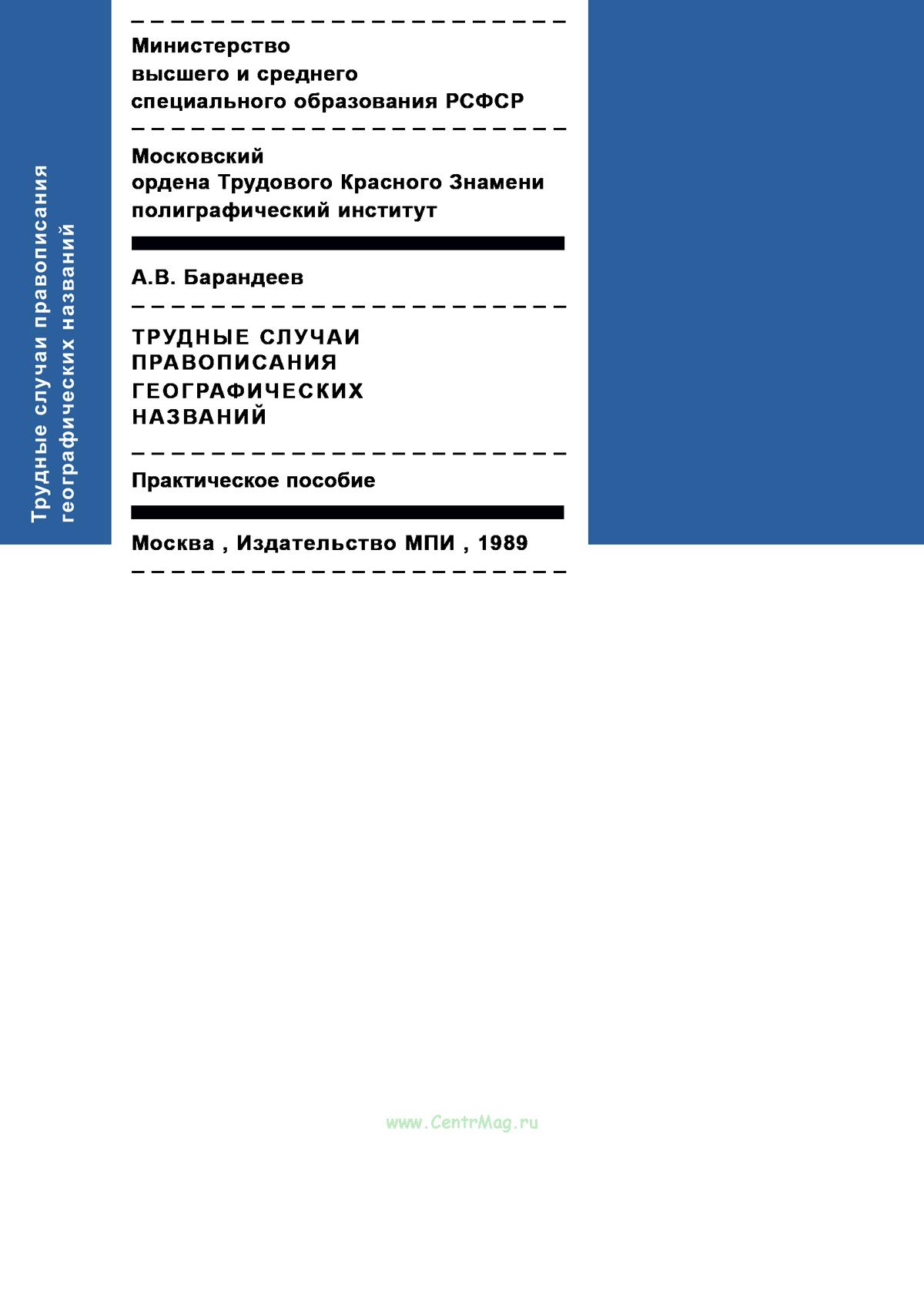 Пособие предназначено для редакторов и корректоров издательств, непосредственно работающих с текстами, включающими географические названия. Оно может быть использовано студентами, обучающимися по специальностям 2027 "Журналистика", 0215 "Издательское дело и редактирование", а также слушателями курсов и факультетов повышения квалификации редакционно-издательских работников.