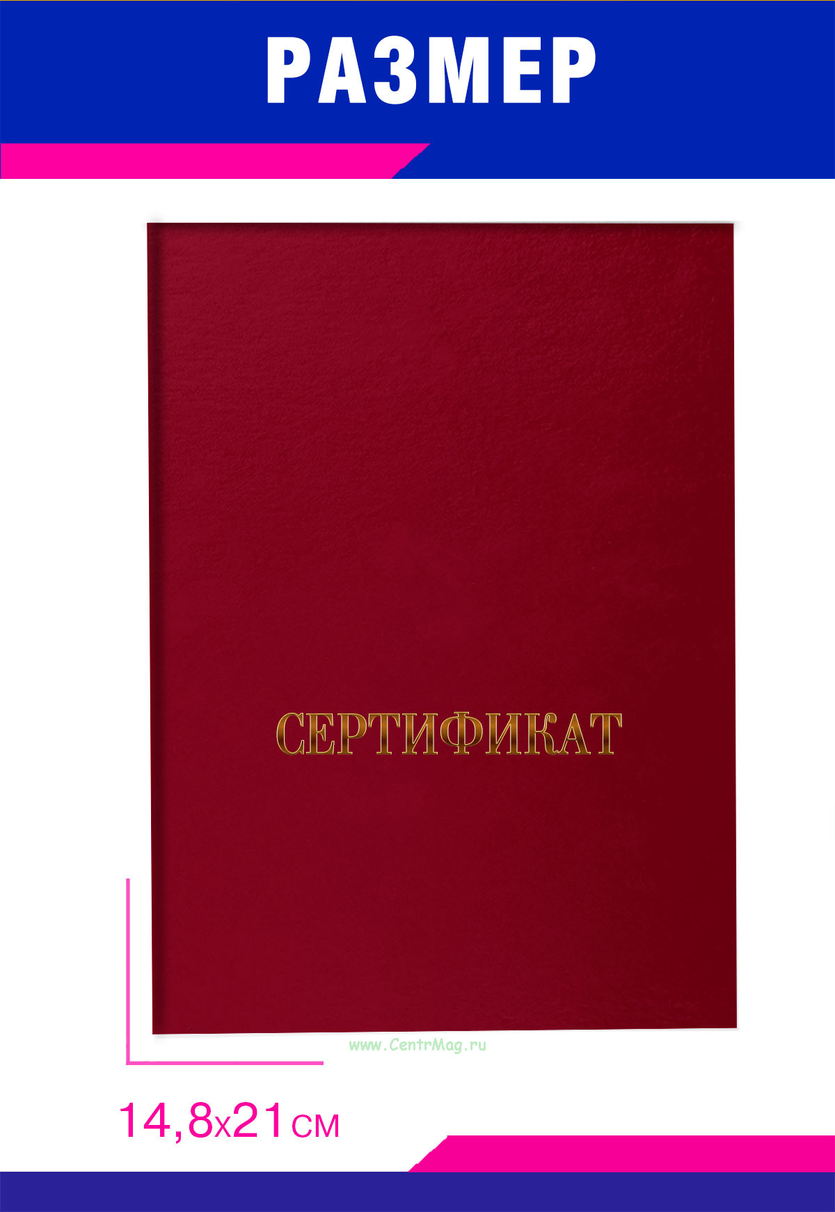 Твердая обложка для сертификата, А5, бордовый бумвинил