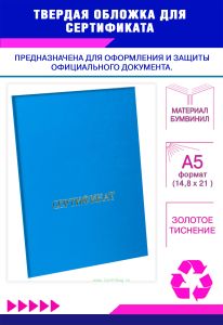 Твердая обложка для сертификата, А5, голубой бумвинил