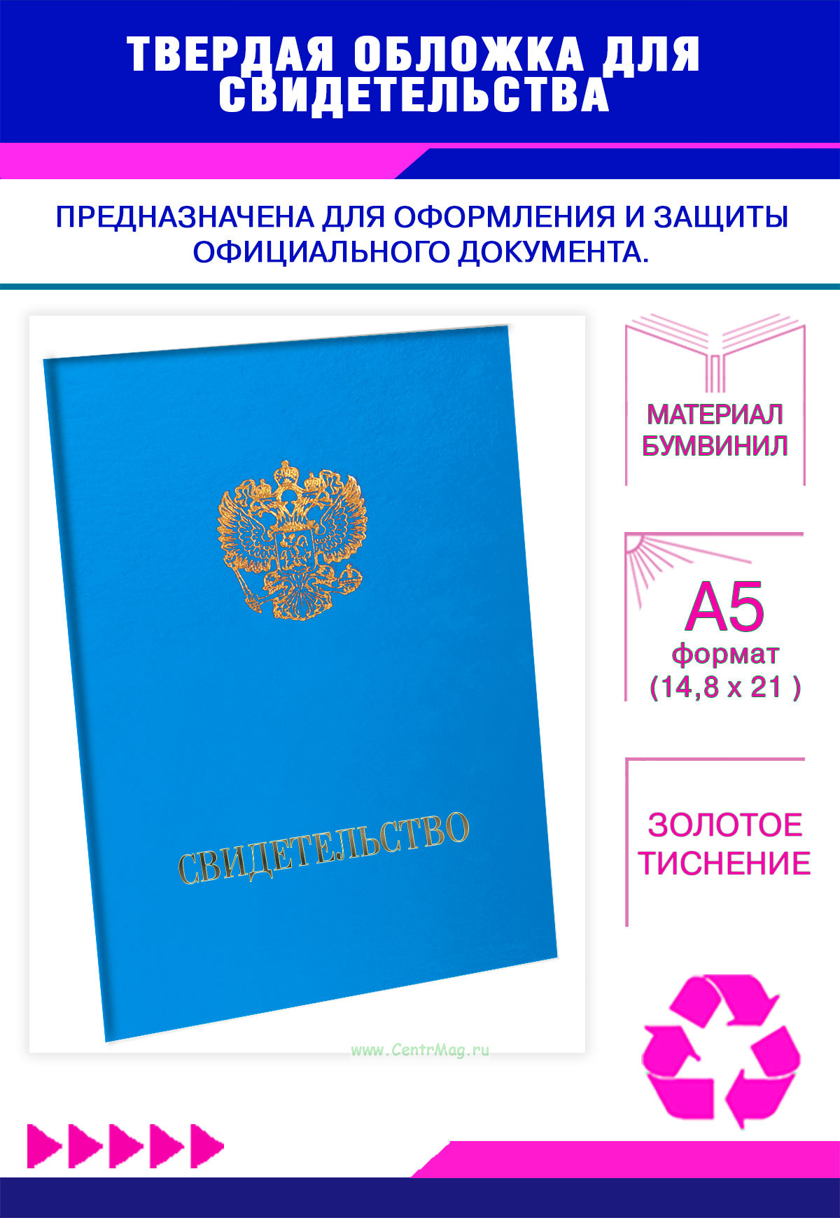 Твердая обложка для свидетельства, А5, голубой бумвинил