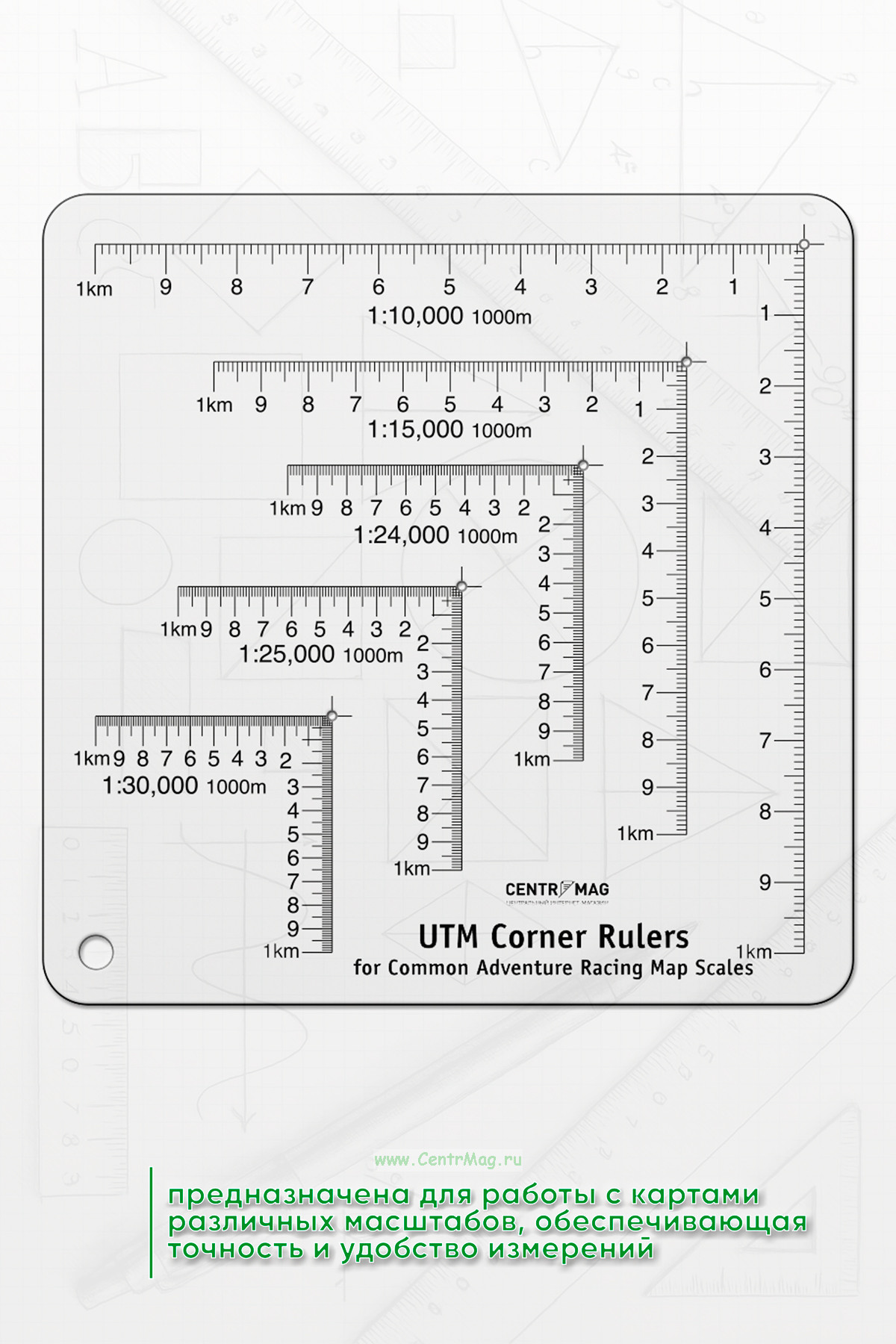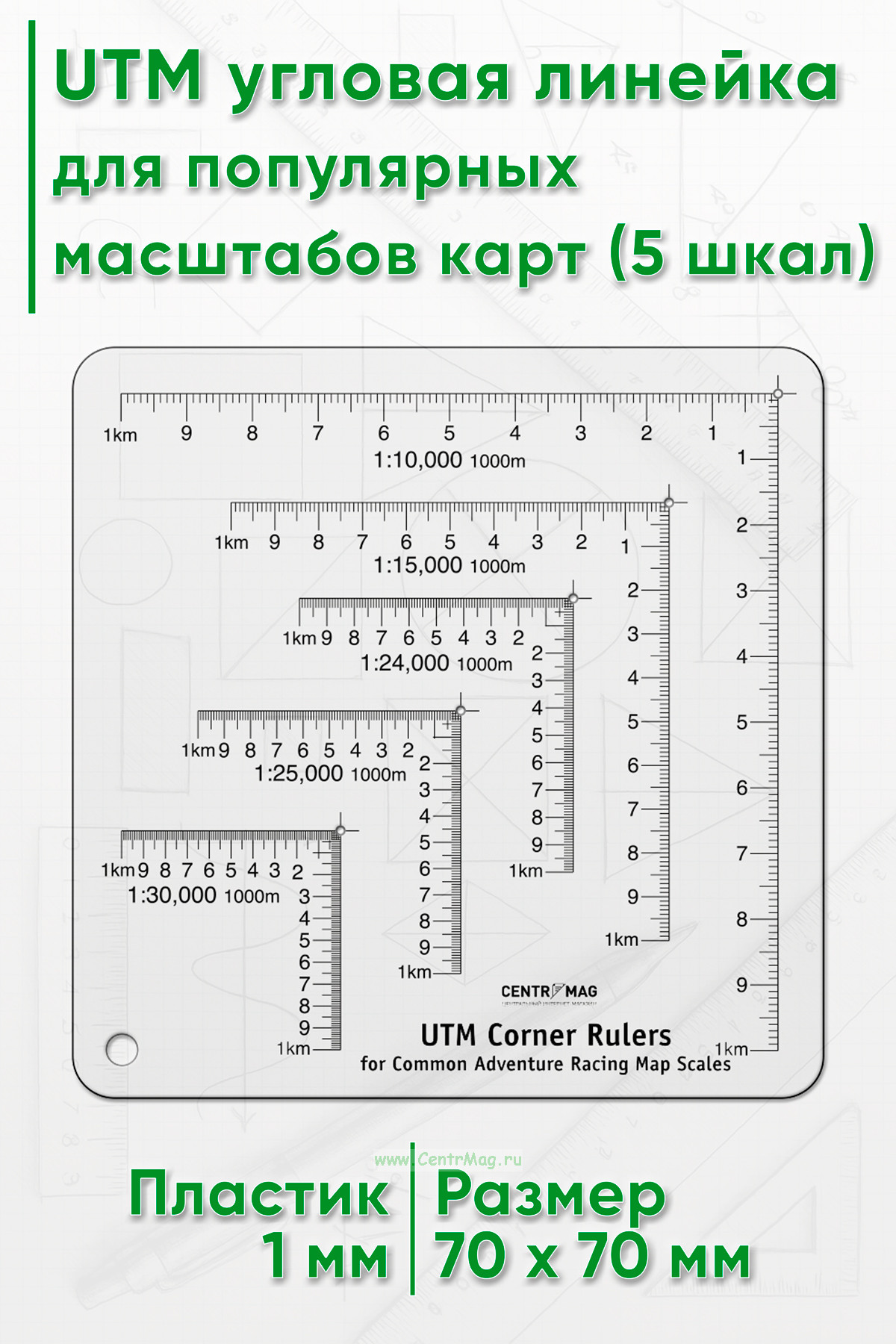 UTM (Universal Transverse Mercator) угловая линейка с 5 шкалами — удобный и универсальный инструмент для работы с картами различных масштабов, обеспечивающий точность и удобство измерений.