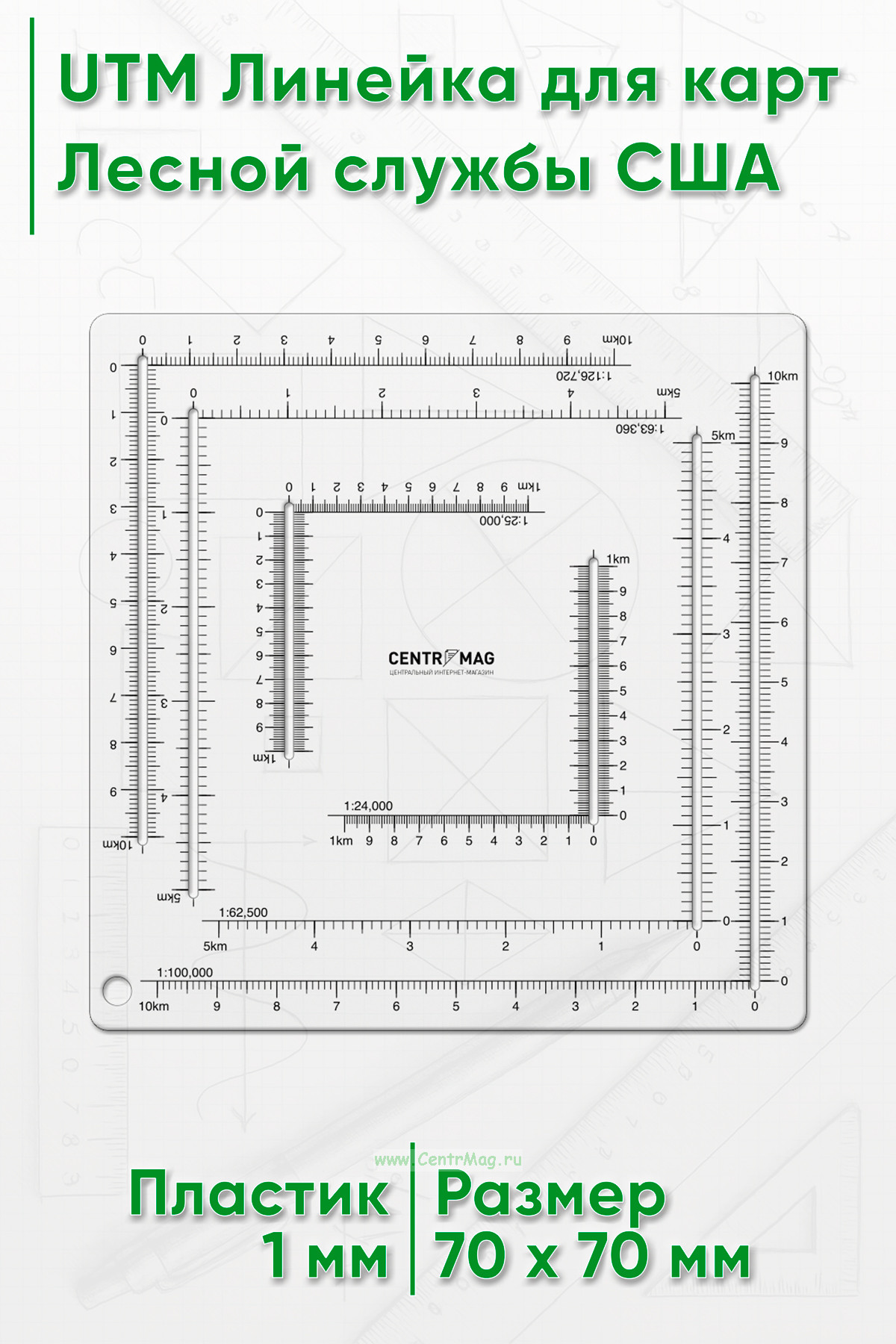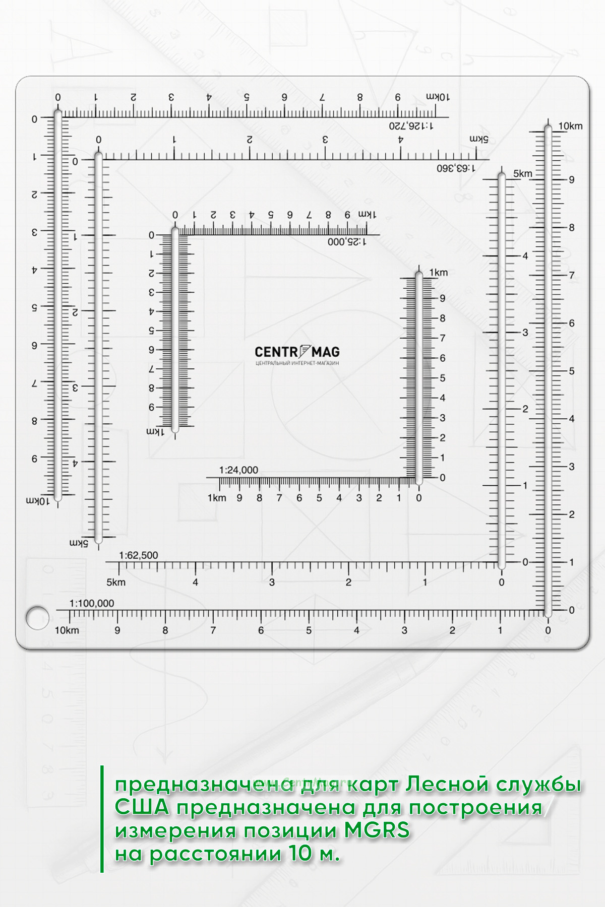 Она содержит 6 шкал для карт, масштаба 1:24 000, 1:25 000, 1:62,500, 1:63,360, 1:100 000, 1:126,720.