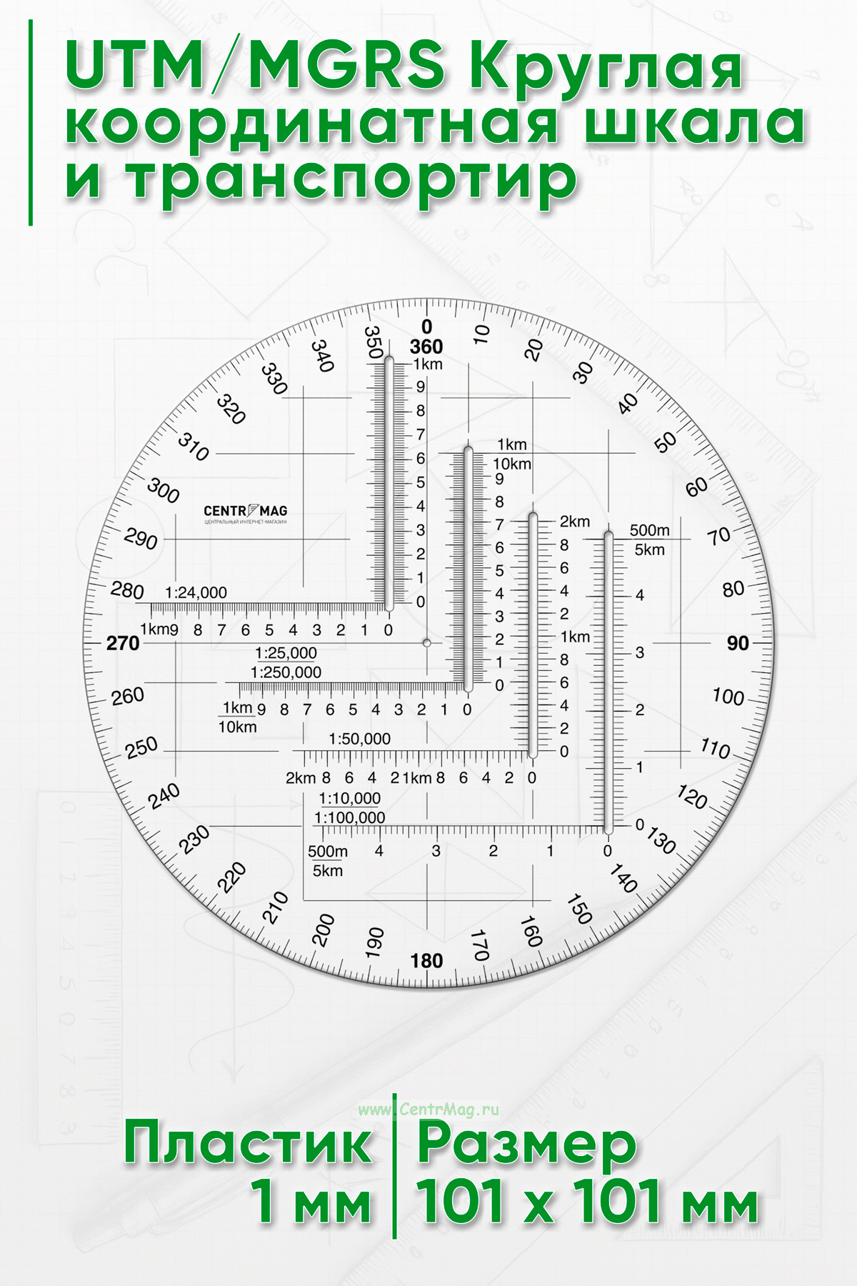 UTM/MGRS Круглая координатная шкала и транспортир (военного образца)