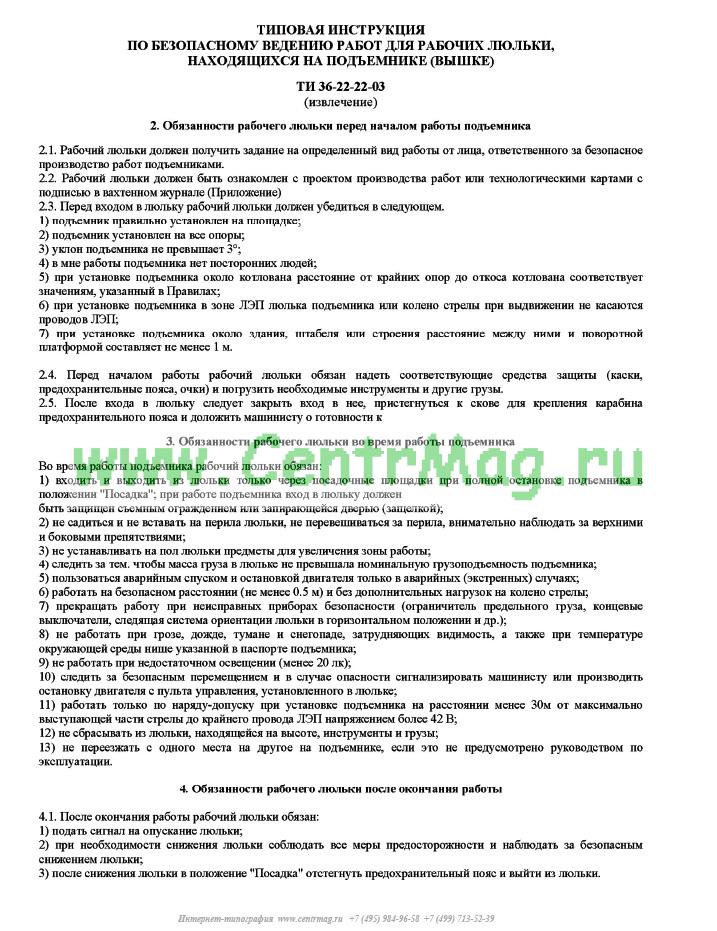 2.2. Рабочий люльки должен быть ознакомлен с проектом производства работ или технологическими картами с подписью в вахтенном журнале