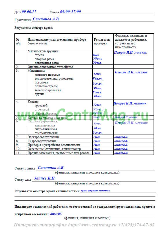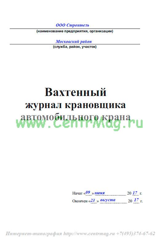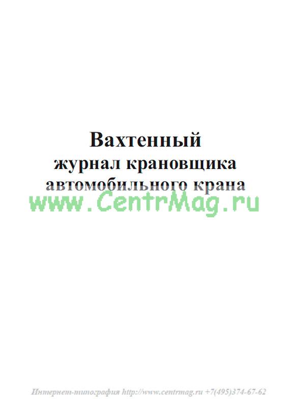 Форма вахтенного журнала крановщика автомобильного крана соответствует Правилам устройства и безопасной эксплуатации грузоподъемных кранов ПБ 10-382-00