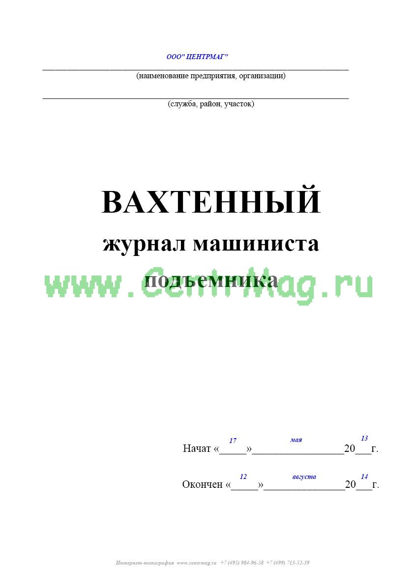 Вахтенный журнал машиниста подъемника содержит следующие строки и графы:
