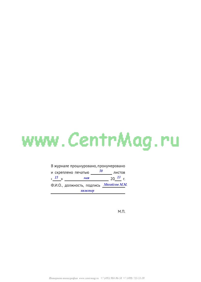 Форма журнала соответствует Приложению к Типовой инструкции для специалистов, ответственных за содержание подъемников (вышек) в исправном состоянии. ТИ 36-22-19-03"