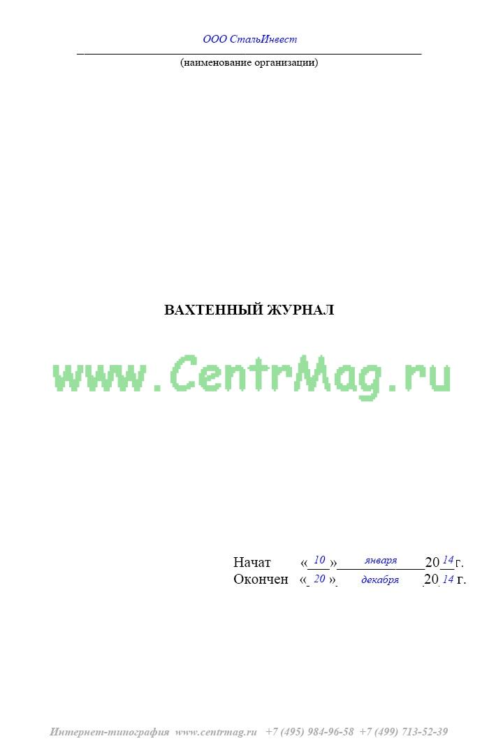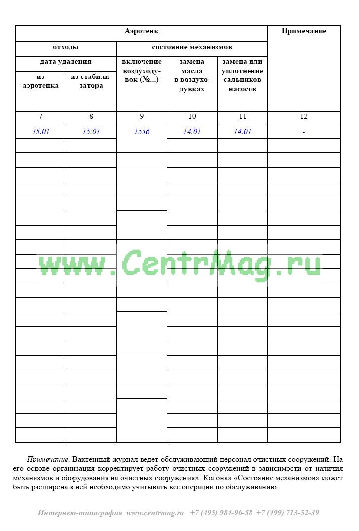 Форма вахтенного журнала очистных сооружений утверждена Правилами технической эксплуатации систем и сооружений коммунального водоснабжения и канализации, утвержденные приказом Госстроя России от 30 декабря 1999 г. № 168 - п. 1.3.